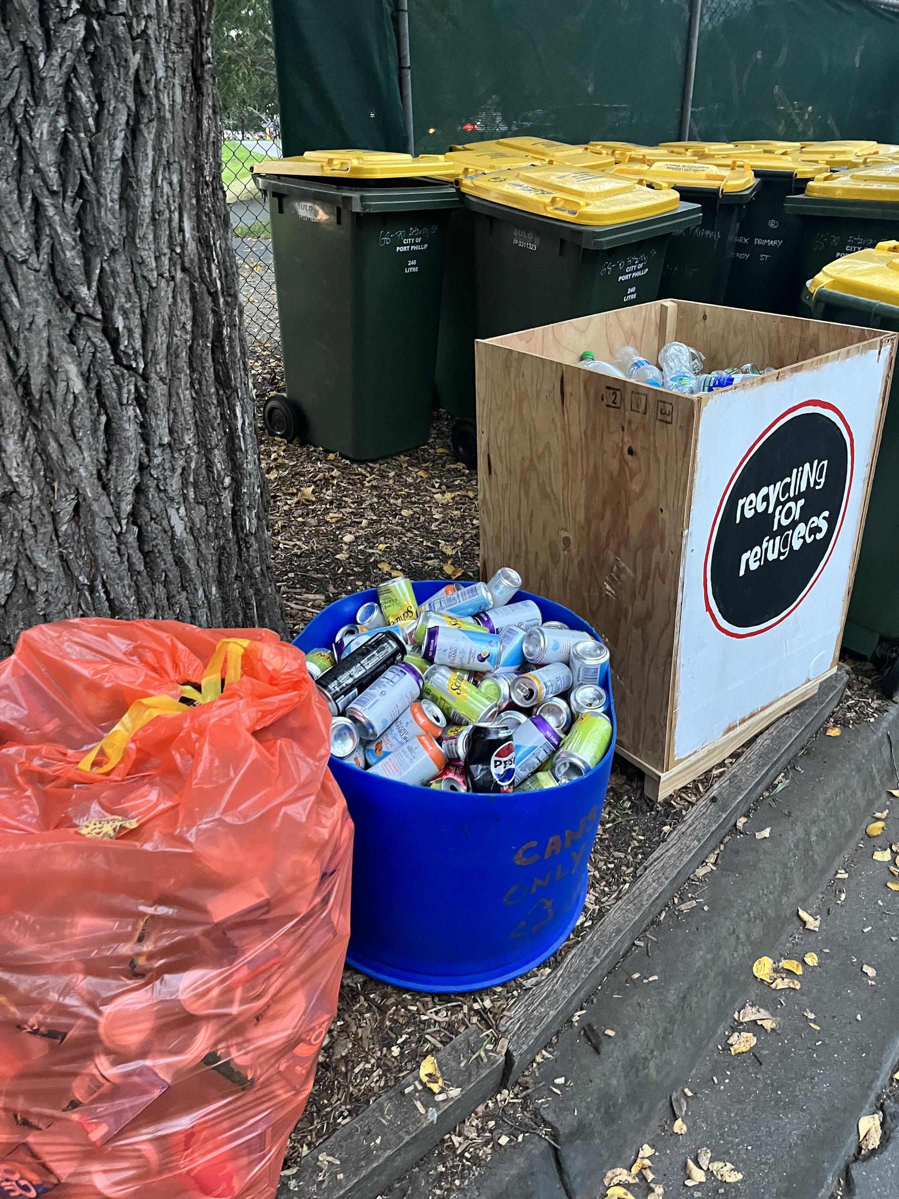 It’s made possible by all families who’ve dropped off containers in the box. Little glass Fever-Tree tonic water bottles. Big plastic mineral water bottles. All the brightly-coloured cans of sparkling water. It’s all so gratefully received, and processed, and Allison and the Green Team will soon choose a local charity to send funds to.