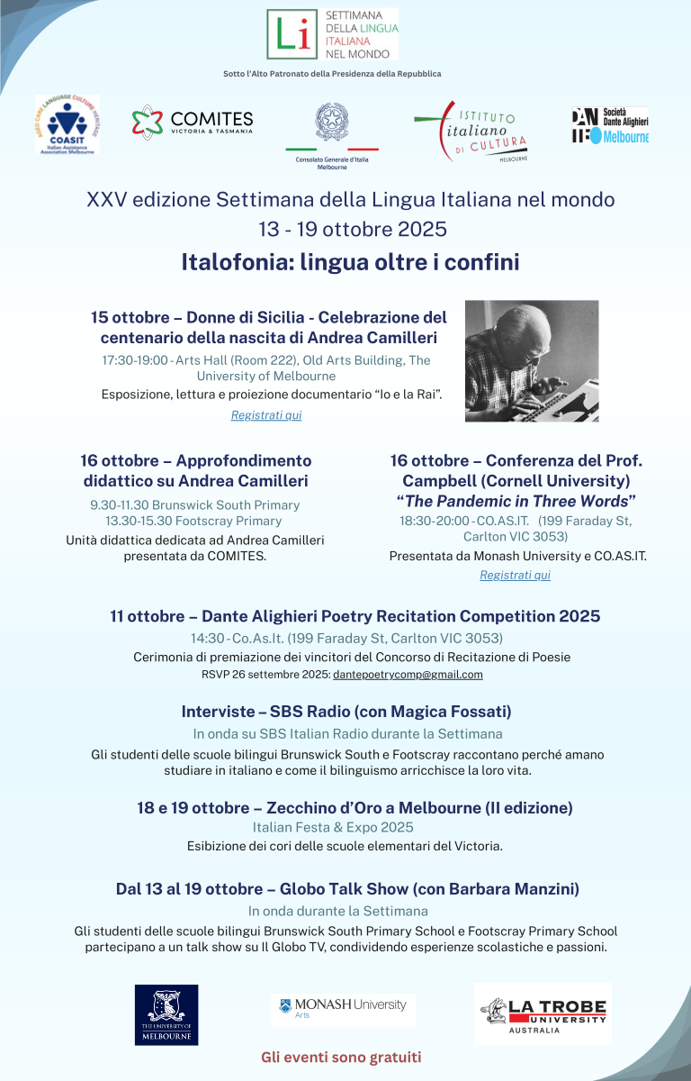 For more information about La Settimana della Lingua Italiana nel Mondo events, please refer to the flyer below.