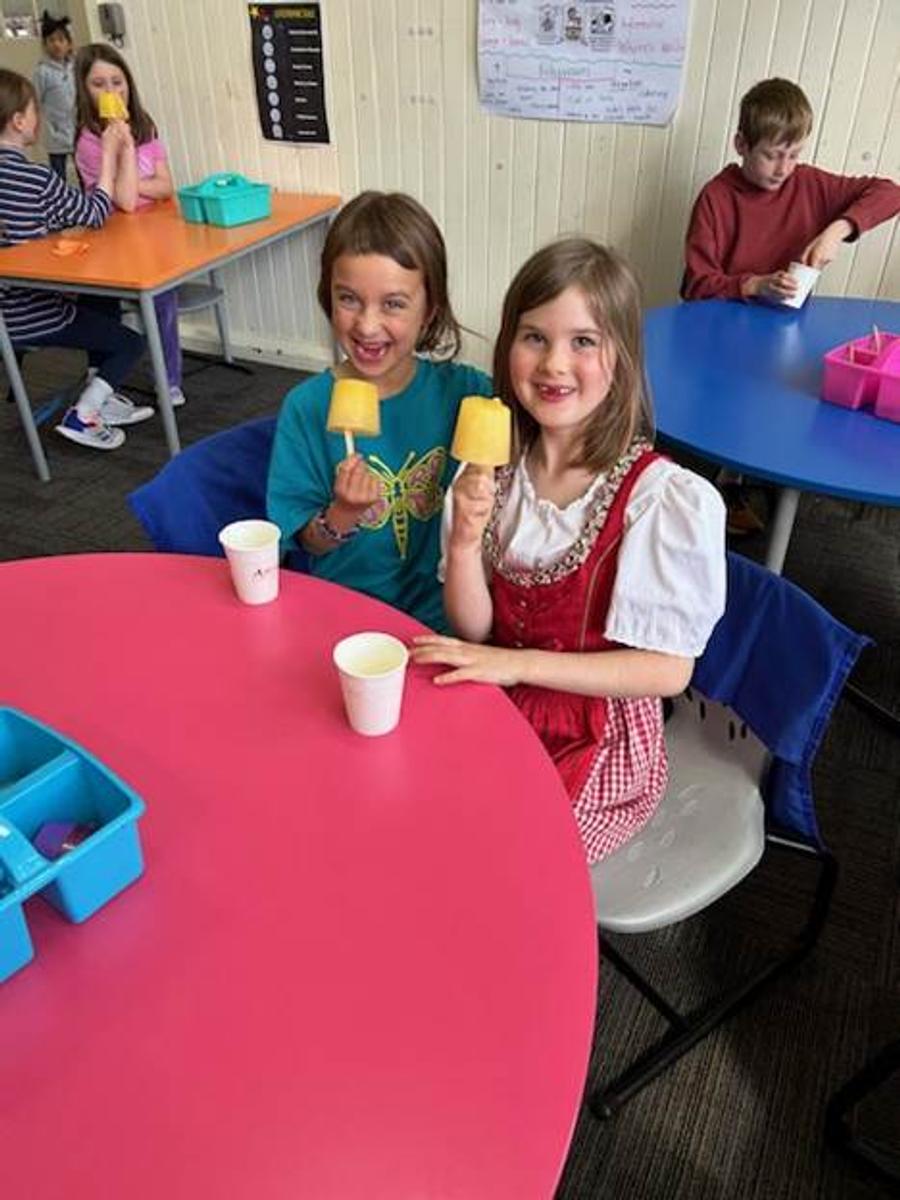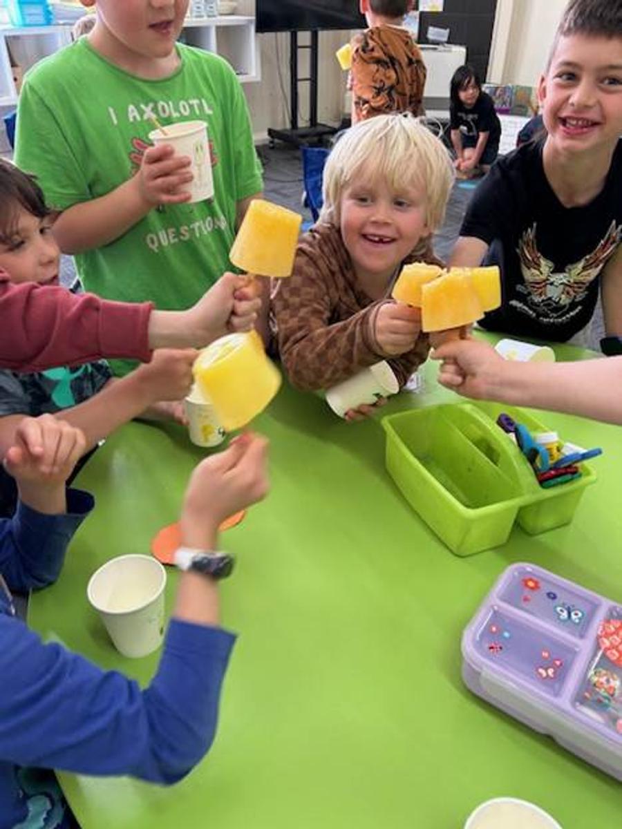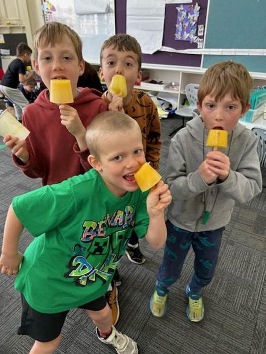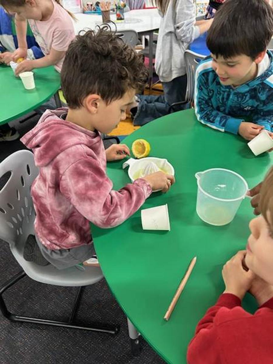 As part of our food unit, the Junior School students deepened their connection with food by using seasonal produce to make their very own citrus icy-pole! Each student selected their preferred flavour, juiced fresh lemons and oranges, and carefully measured ingredients using tools such as teaspoons, tablespoons, jugs, and cups. After one long (and eagerly awaited!) night, the icy poles were successfully frozen and then eaten. A key focus of the unit has been developing students’ awareness of their senses as they make and eat different foods. The icy-poles provided a perfect opportunity for this exploration with the students describing different sensory experiences as they made and ate their icy poles.