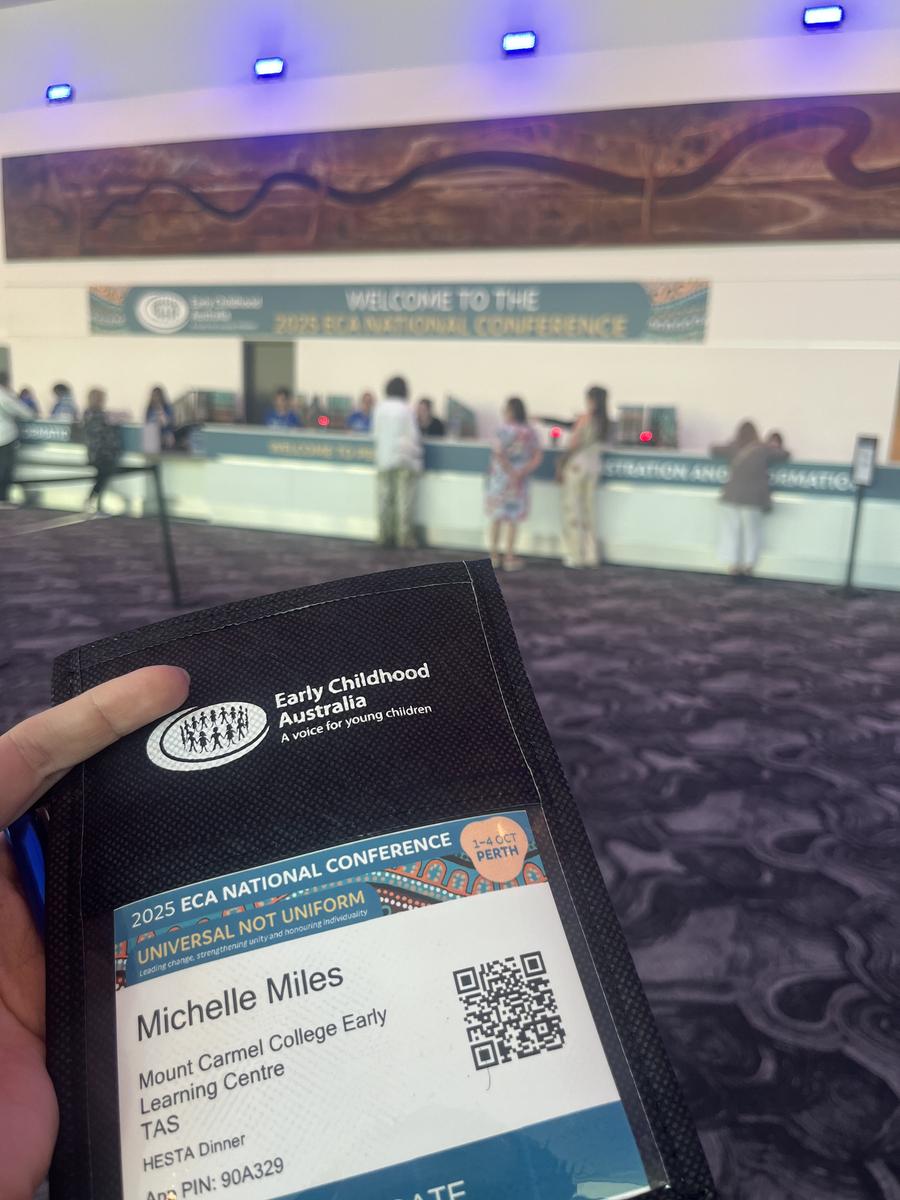 Attending the 2025 Early Childhood Australia National Conference was an absolute highlight of my career. I was fortunate to represent Tasmania this year as one of only four educators selected from across the state to receive a Department of Education scholarship. An experience that really reminded me how lucky I am to work in such a meaningful profession alongside such a passionate and dedicated team here at Mount Carmel College Early Learning Centre.