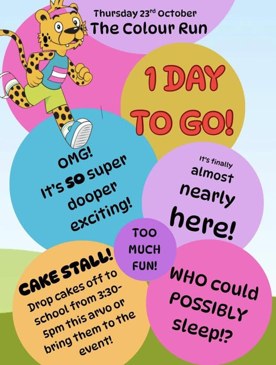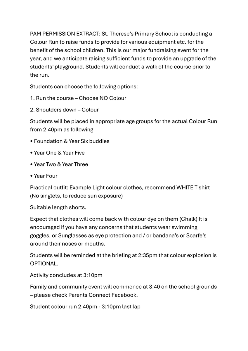 - Send kids in casual clothes tomorrow…old clothes are best for colour bombing