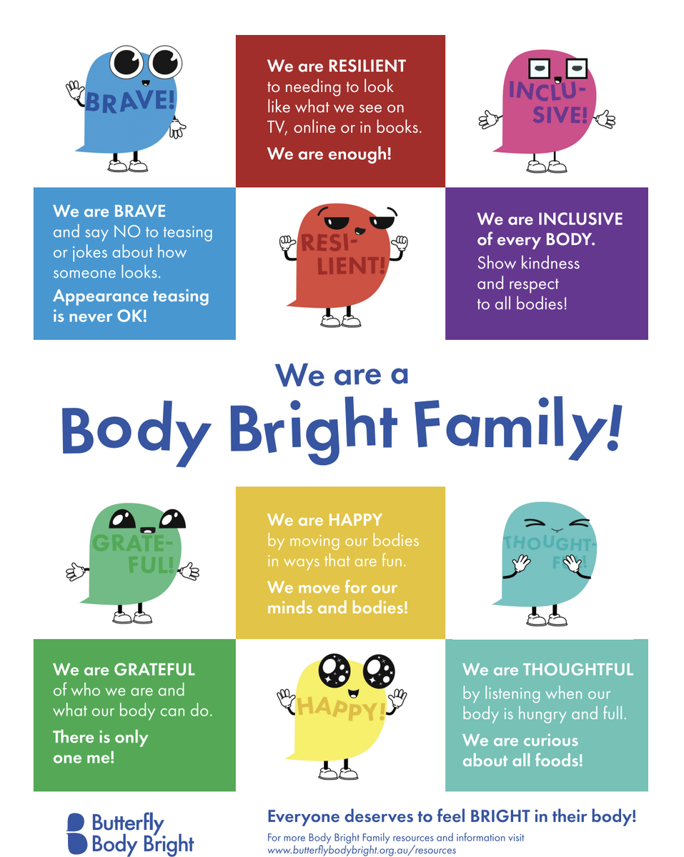 The Body Bright program has commenced in all classes. This program, developed by the Butterfly foundation promotes healthy attitudes and behaviours towards body, eating and physical activity.