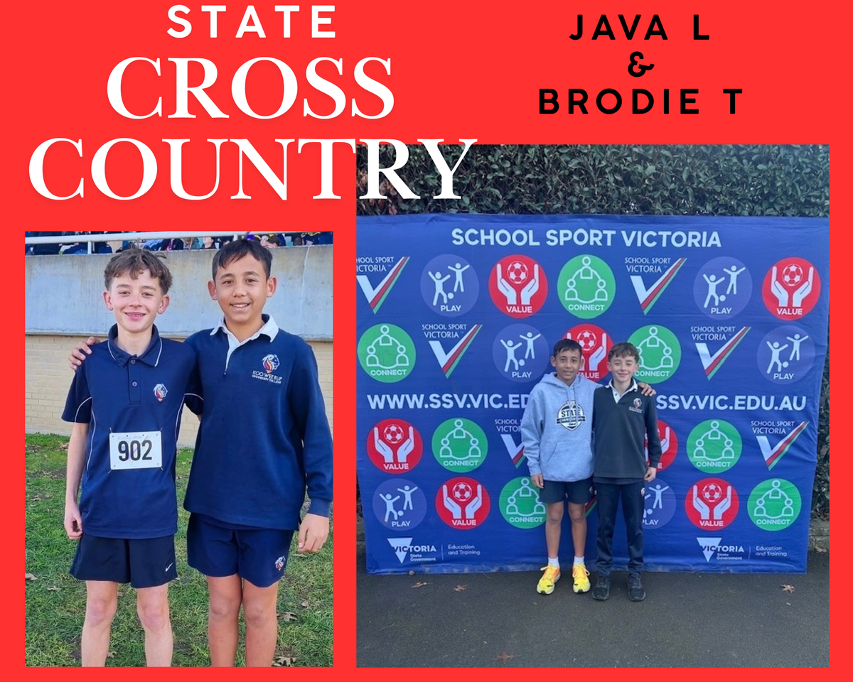 We saw two Year 8 boys, Java L and Brodie T, compete in State Cross Country. Both students took on the challenge and did extremely well in their age groups: