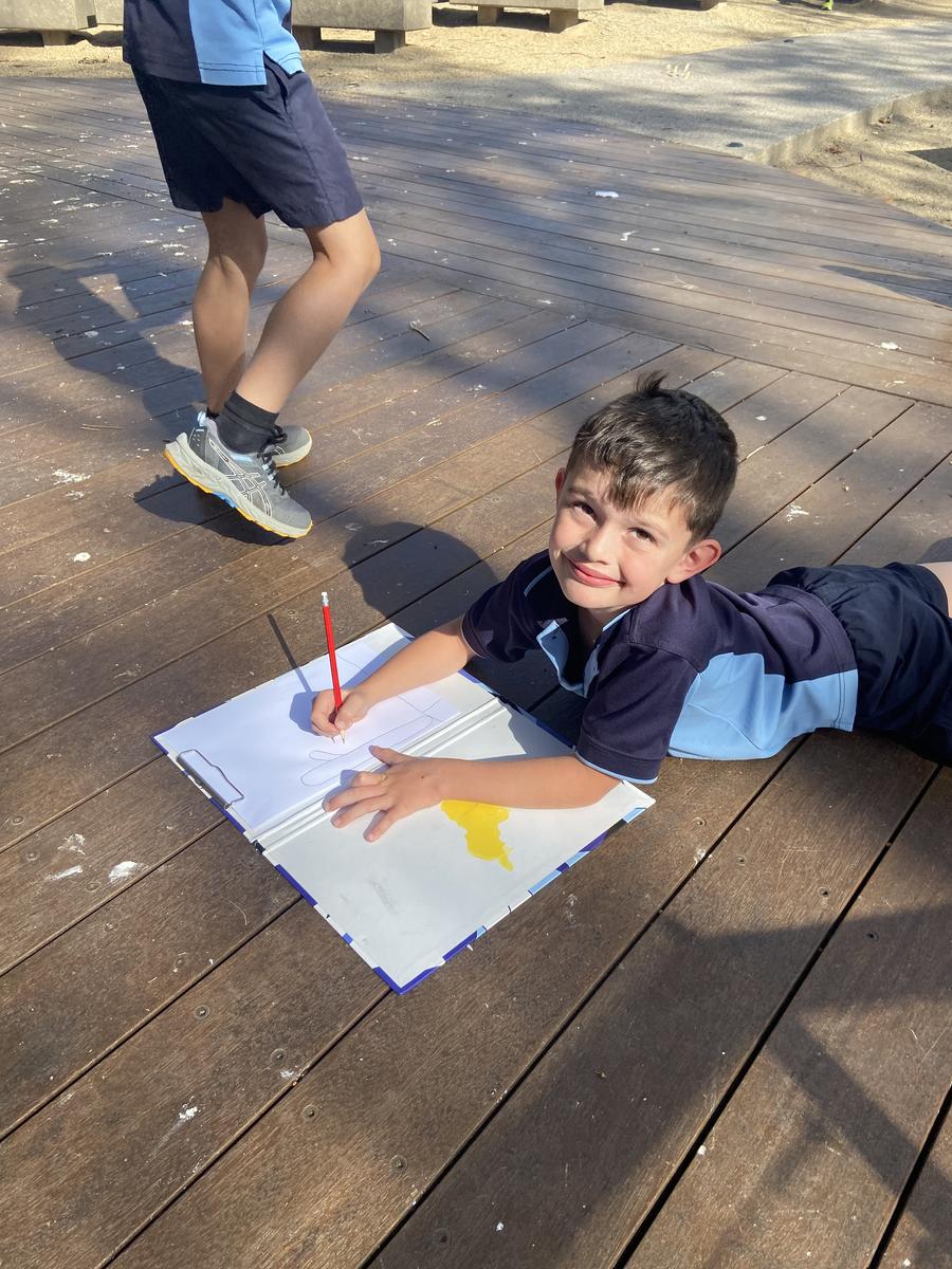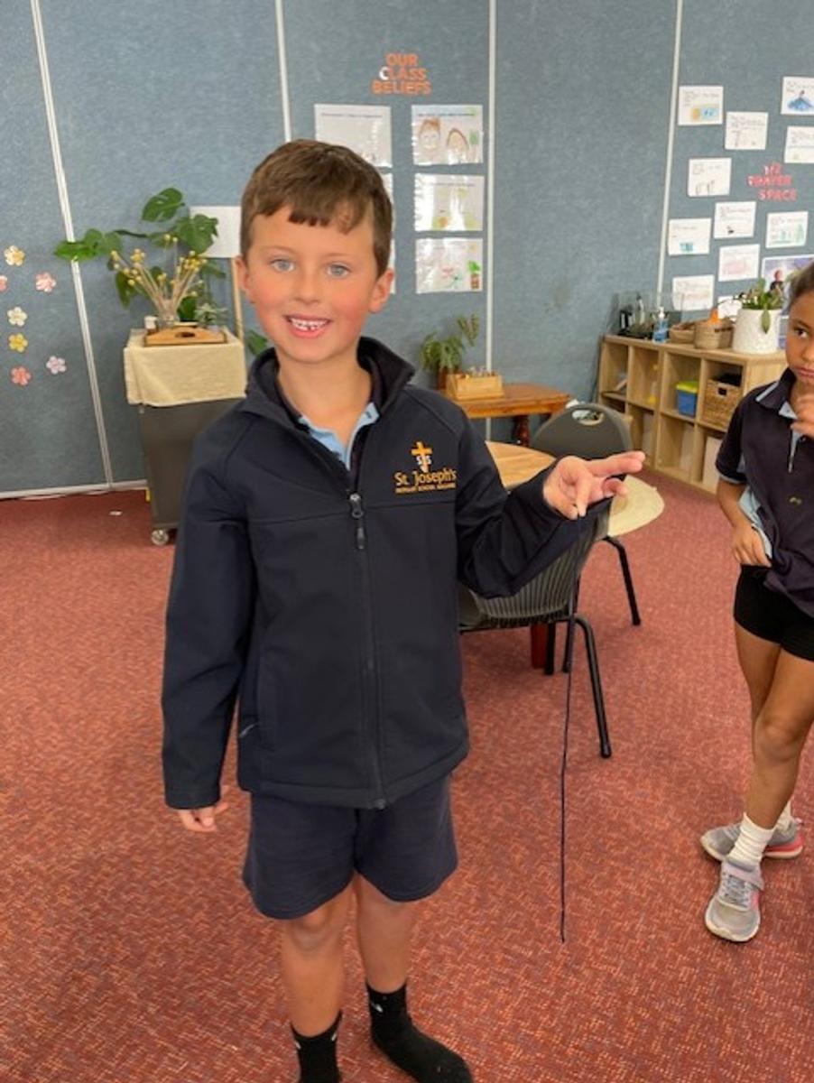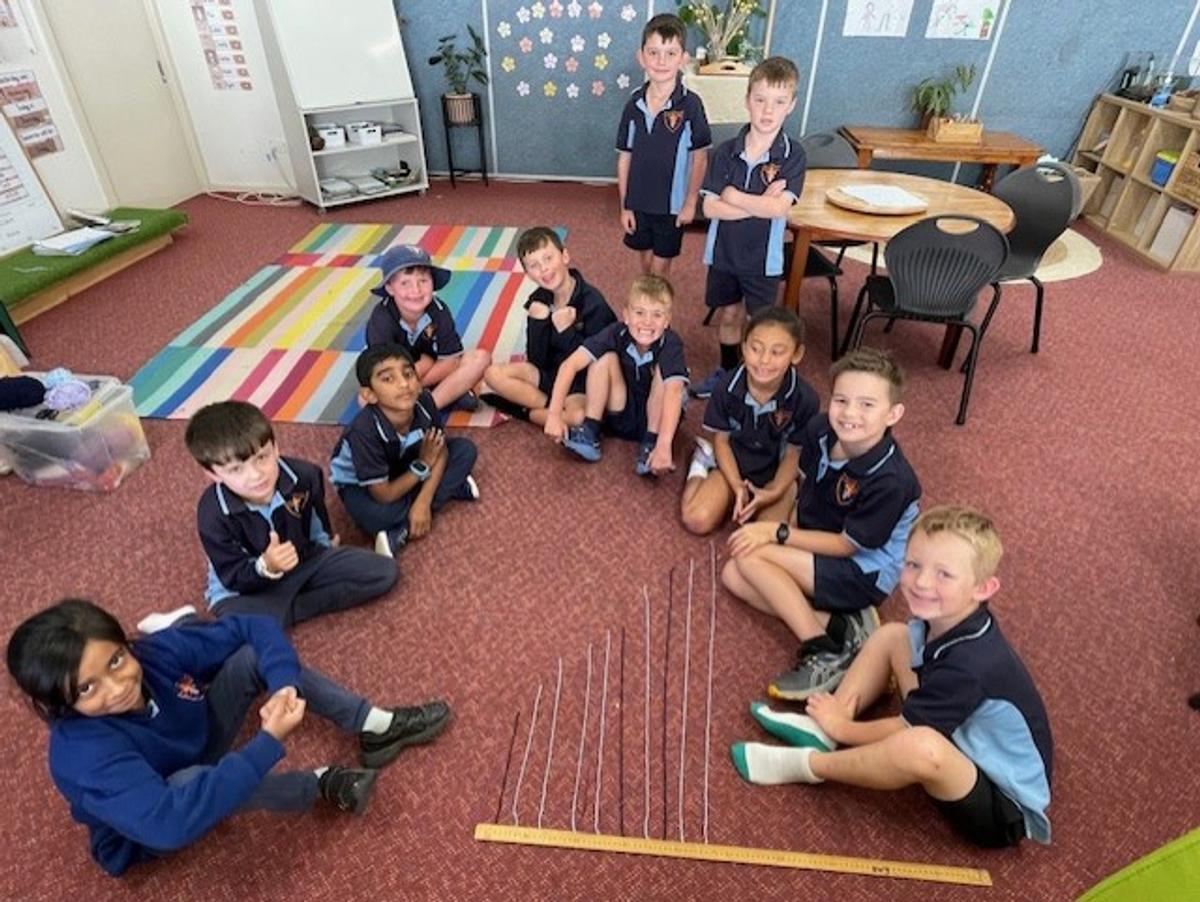 We have been looking at measurement this fortnight, focussing on length. We began our unit by measuring the Cross Country course through MacKillop Walk using a metre wheel and counting in 5 metre increments, with Finley, Huda, Adam, Grace and Aahn tallying as we went. We are now looking at comparing lengths using informal measurements such s string, and using terms such as shorter and longer.