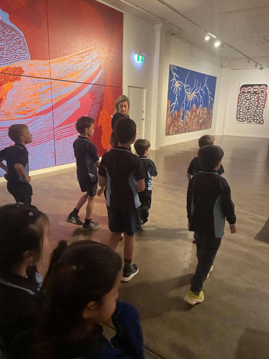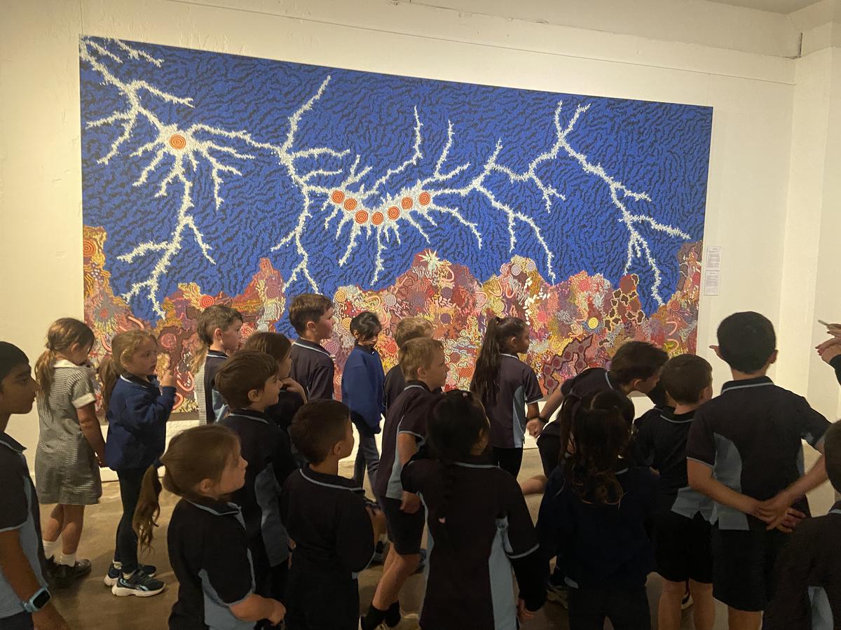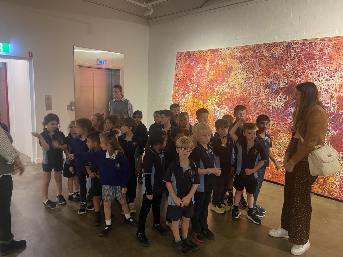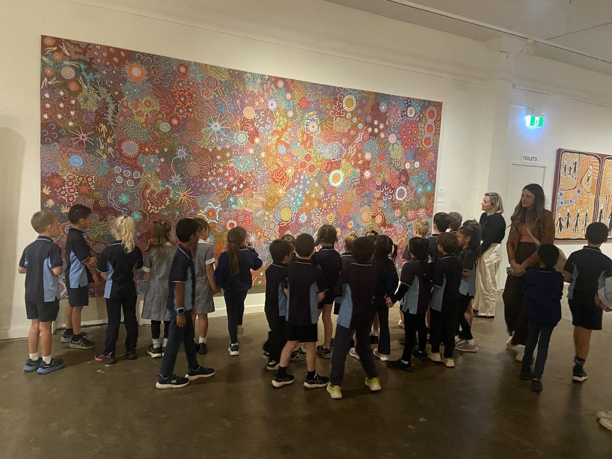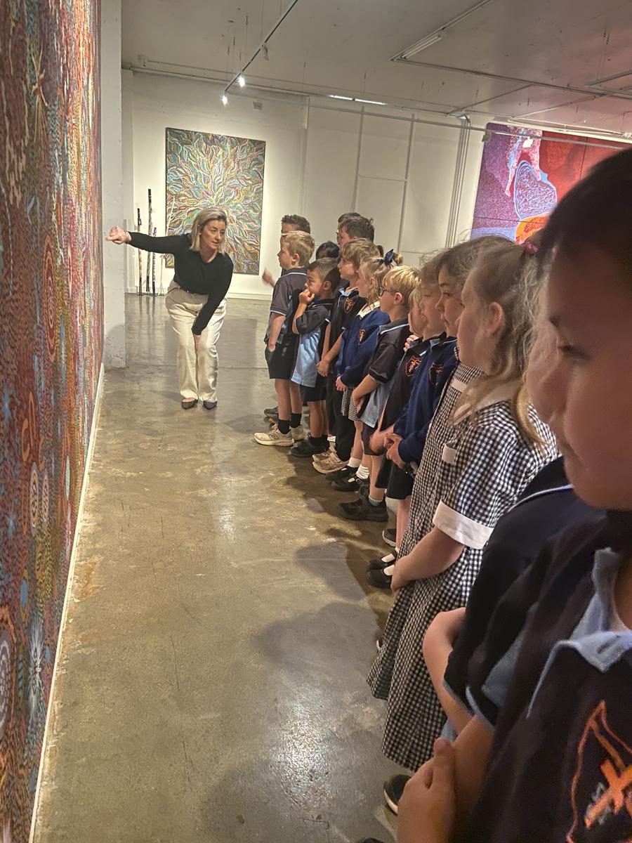 As part of our “Telling Stories through Art” community project this term, our students had the privilege of visiting one of the largest collections of First Nations artwork at Mitchelton. Guided by curator Sam, the children explored the gallery, learning about the deep cultural meanings behind each piece.