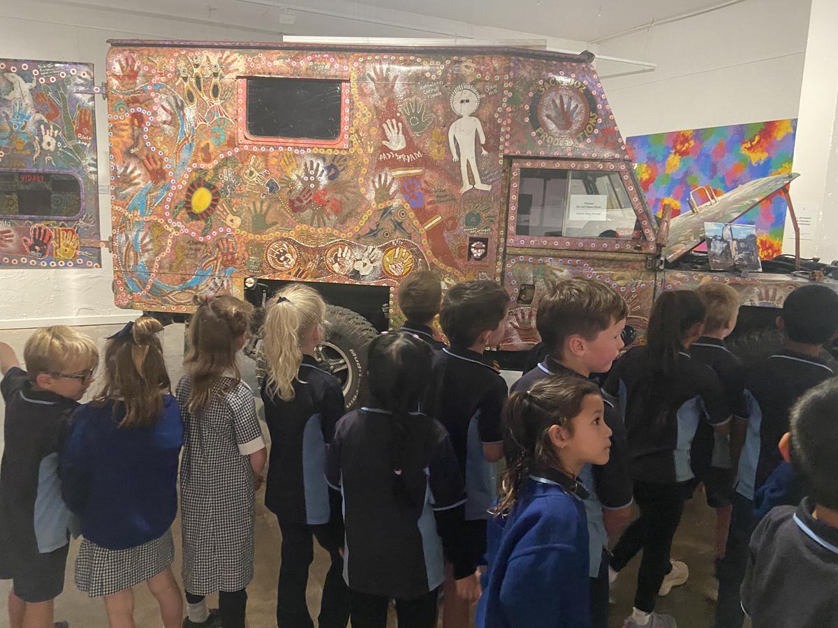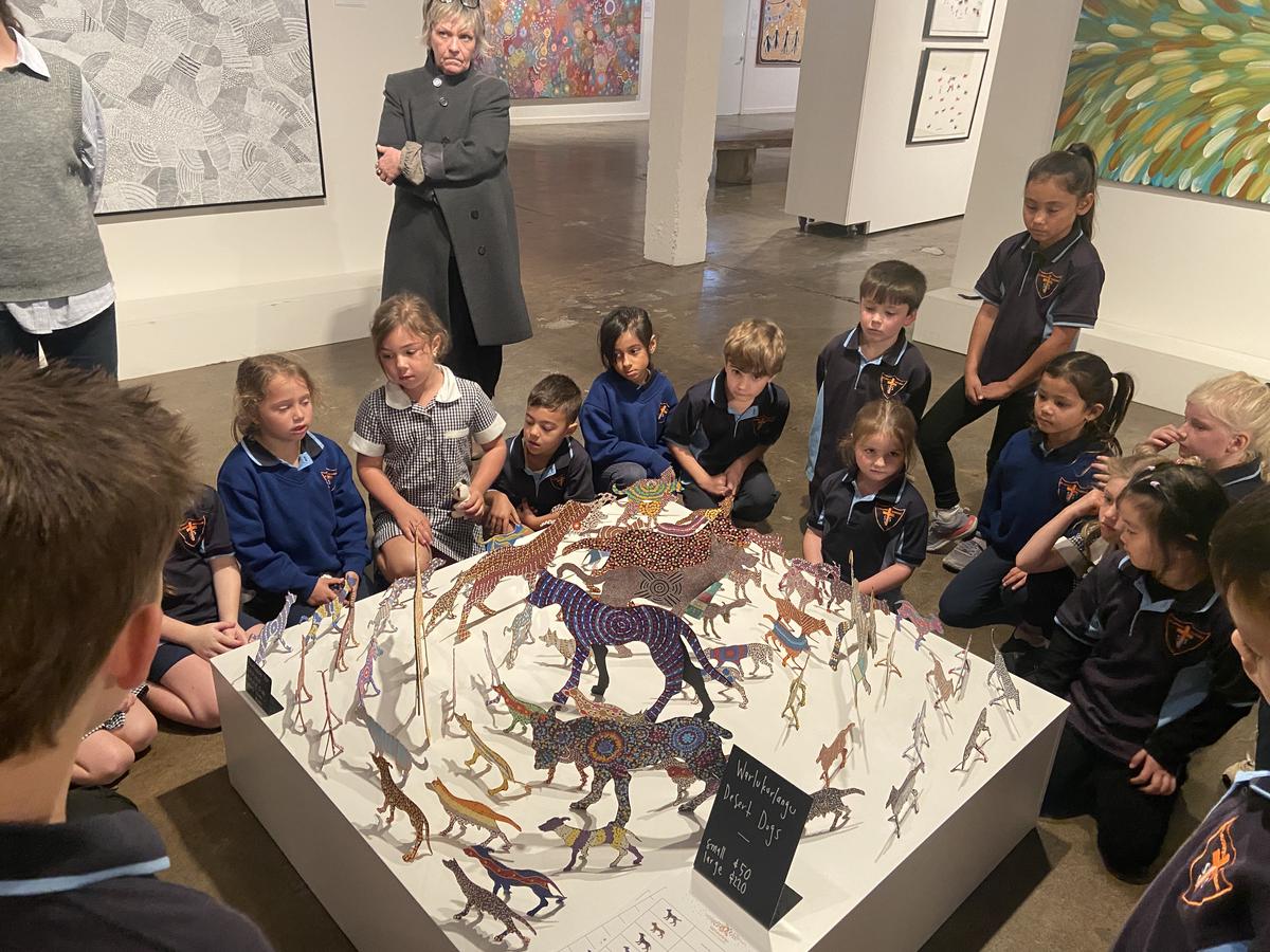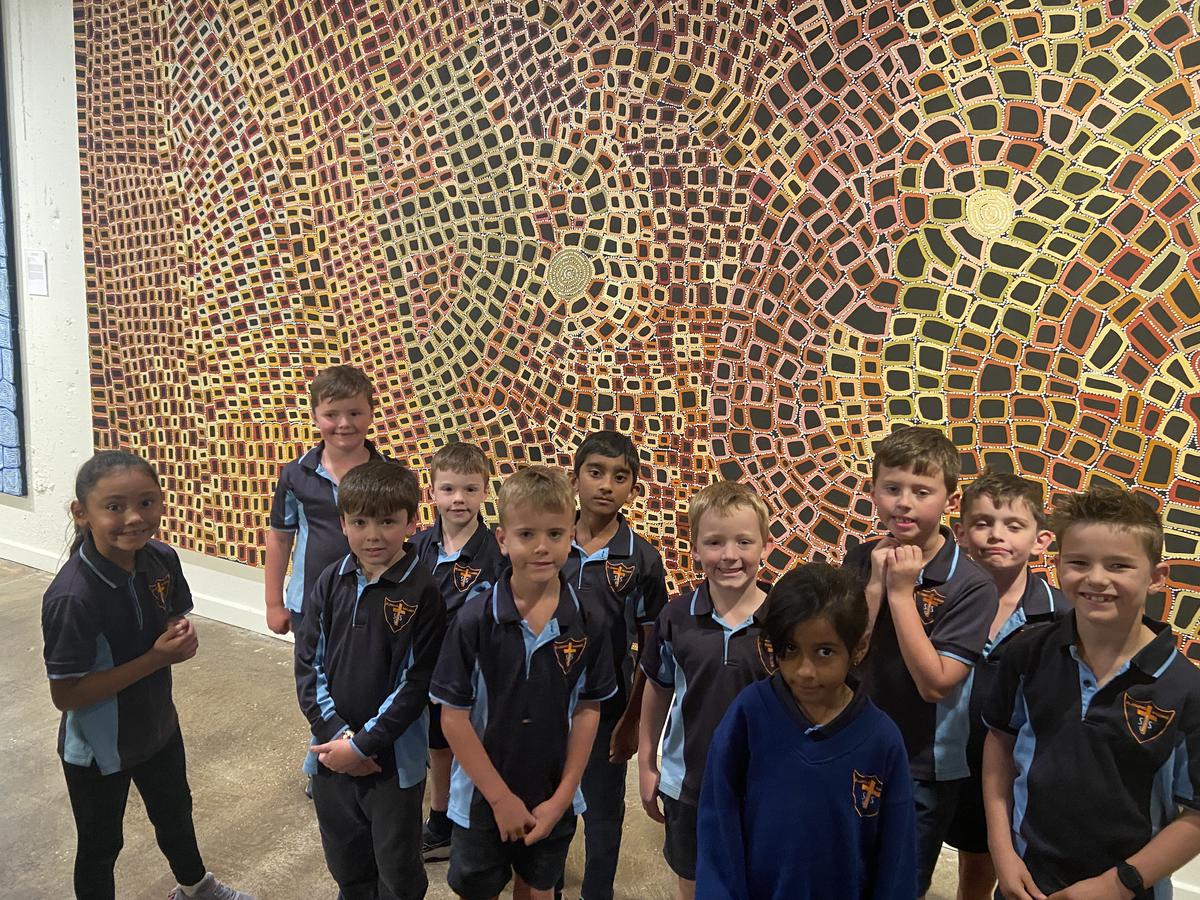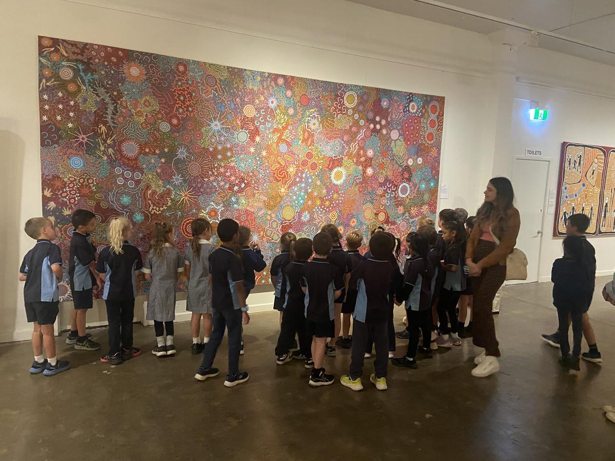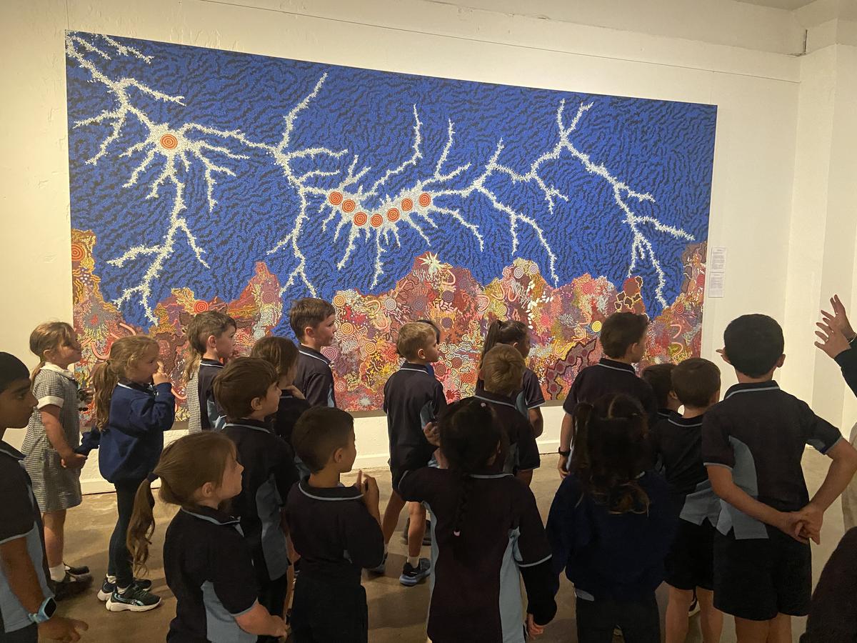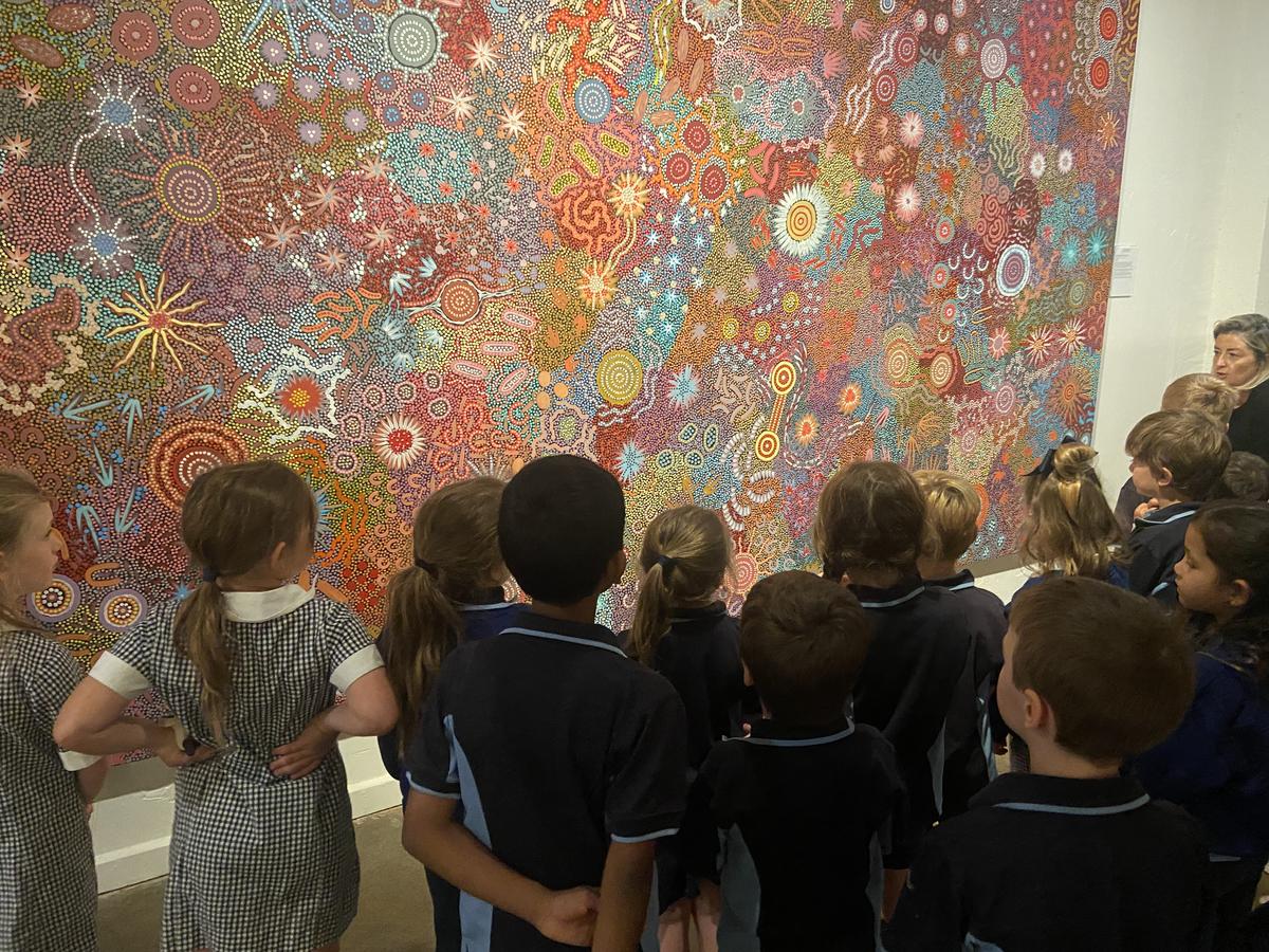 As part of our “Telling Stories through Art” community project this term, our students had the privilege of visiting one of the largest collections of First Nations artwork at Mitchelton. Guided by curator Sam, the children explored the gallery, learning about the deep cultural meanings behind each piece.
