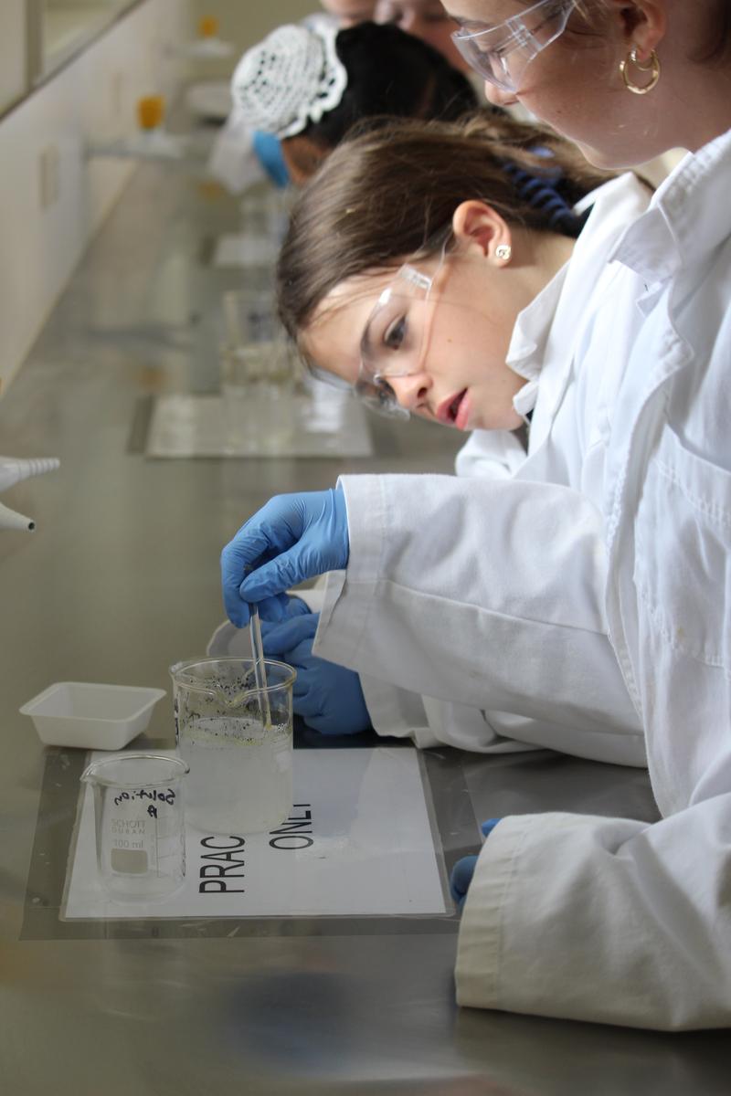 Students mixed two colourless solutions to observe whether the mixture would change colour, then added another chemical to see if it could be turned back to colourless.