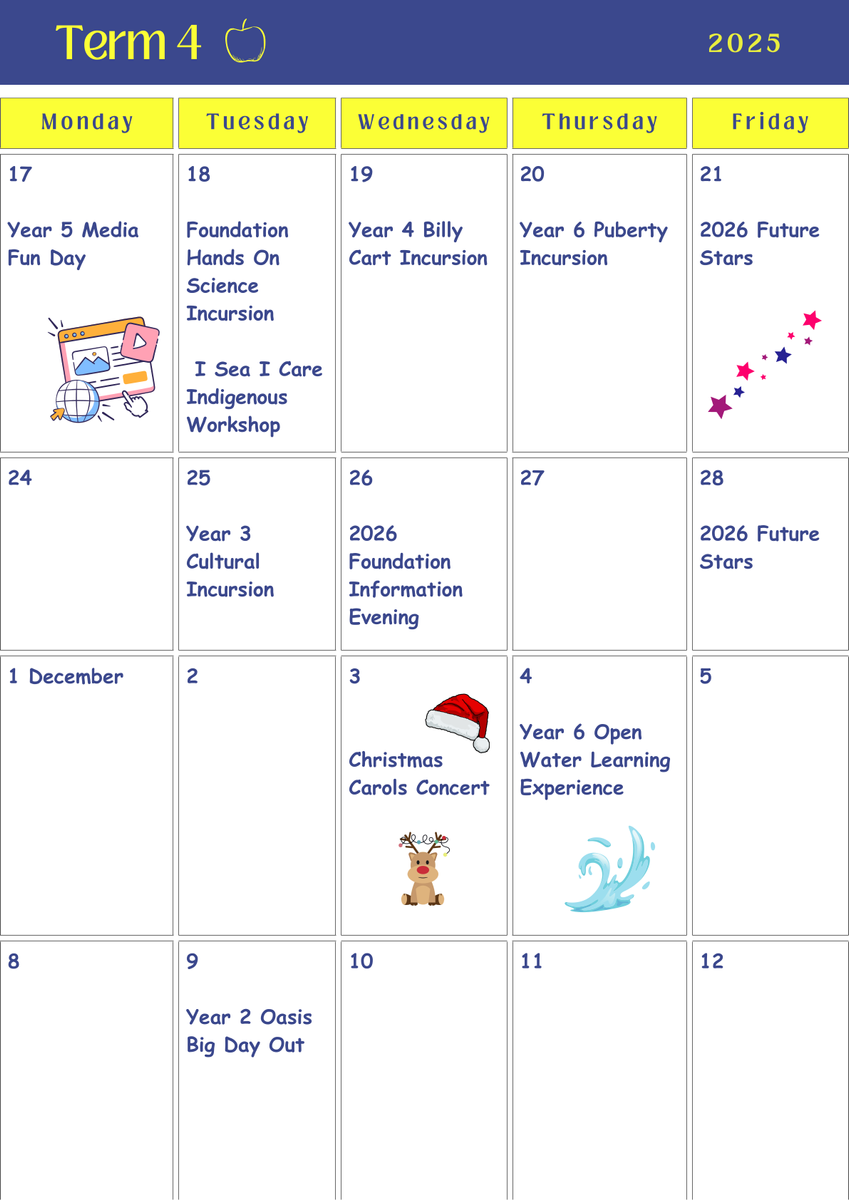 | Year 4 Unite Incursion | Wednesday, 5 November |