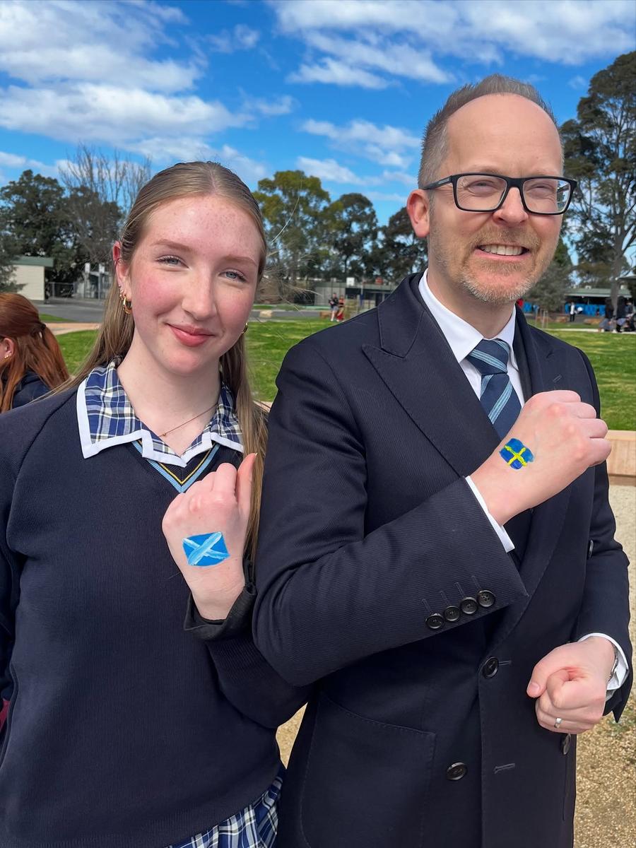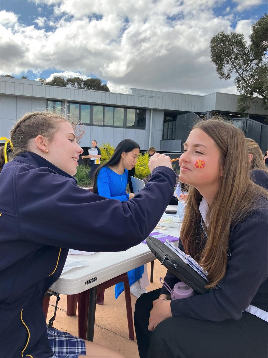 Thank you to talented Year 11 students Lola, Amelia, Ella, Emily and Kim who added a visual tribute by painting flags from around the globe, symbolising unity, belonging, and global connection.