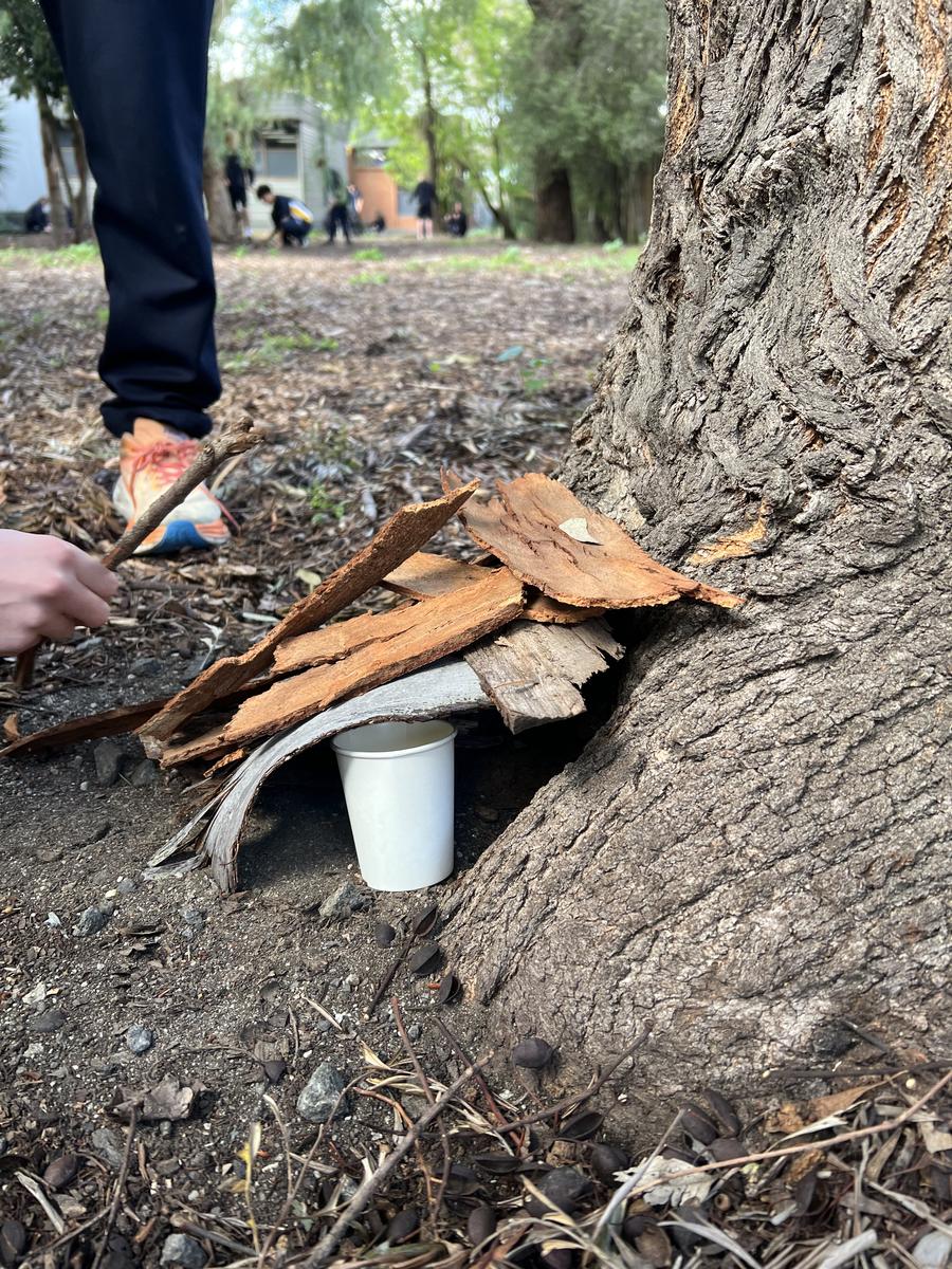 As part of their First Nations curriculum, Year 7’s were challenged to make a gunyah (shelter) that was waterproof. I was very impressed with 7C’s efforts, with the majority managing to keep any water from entering the cup we placed under their shelter.
