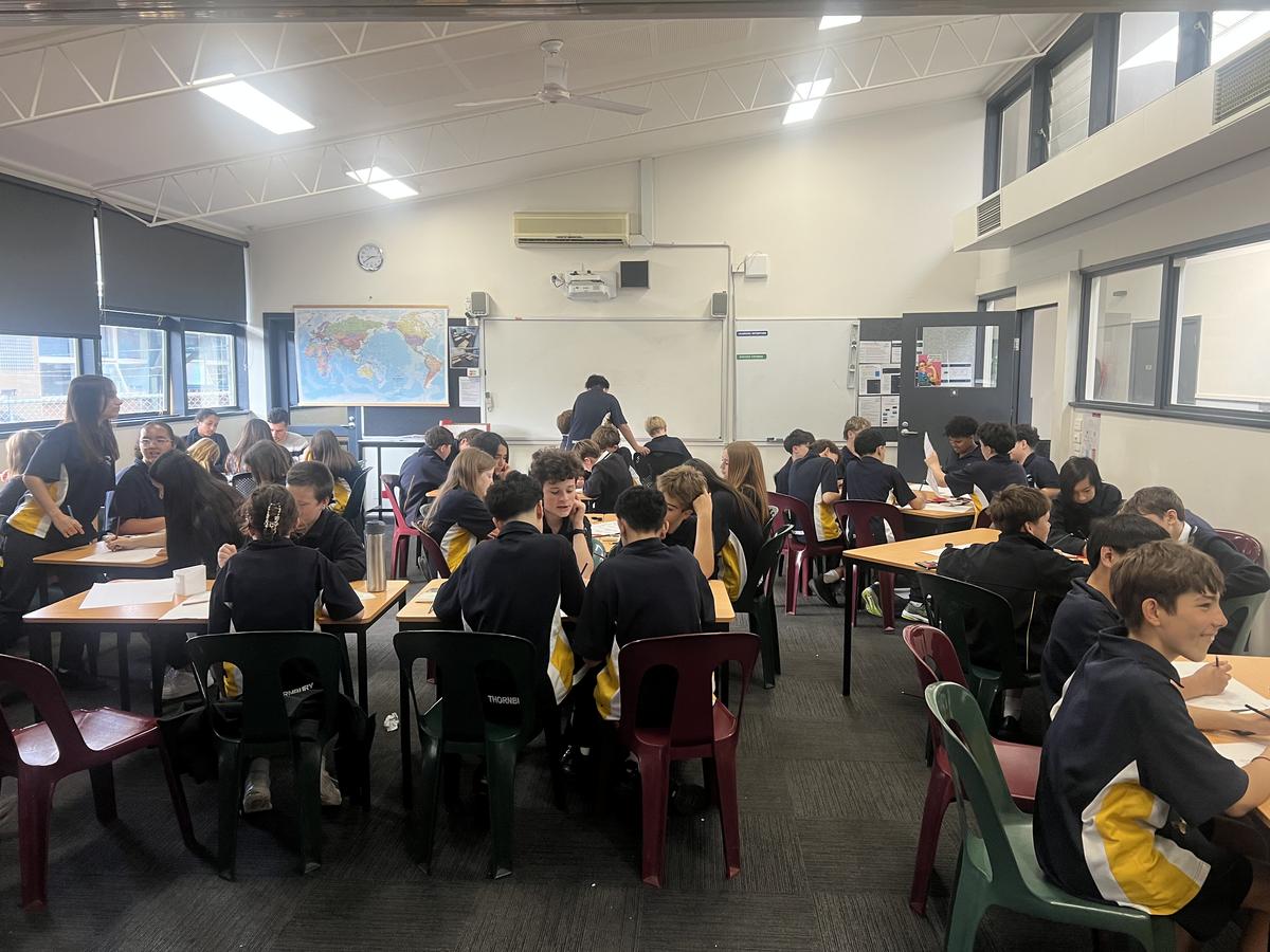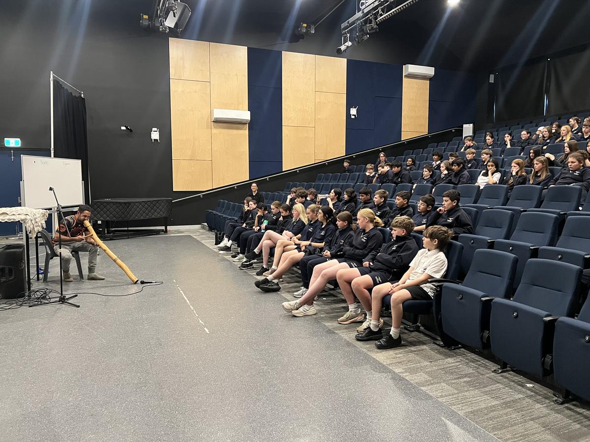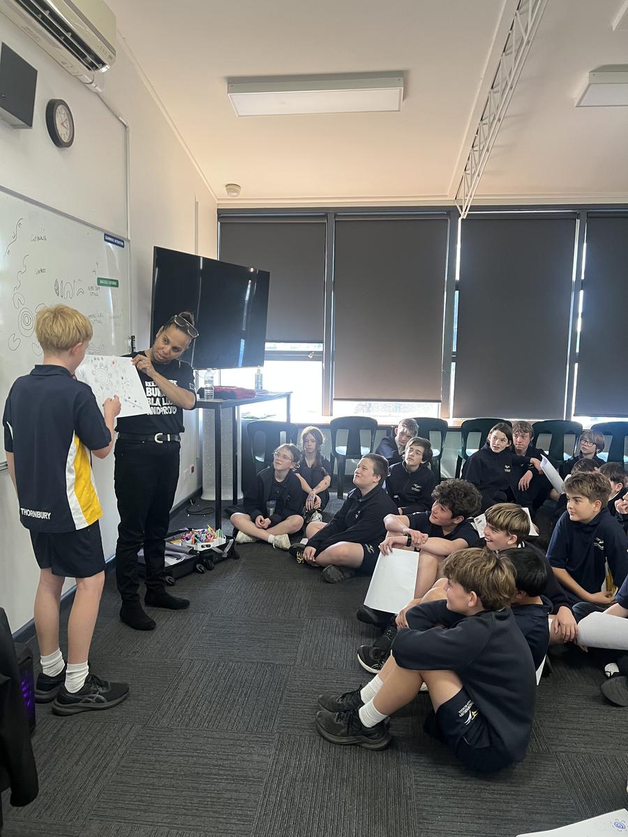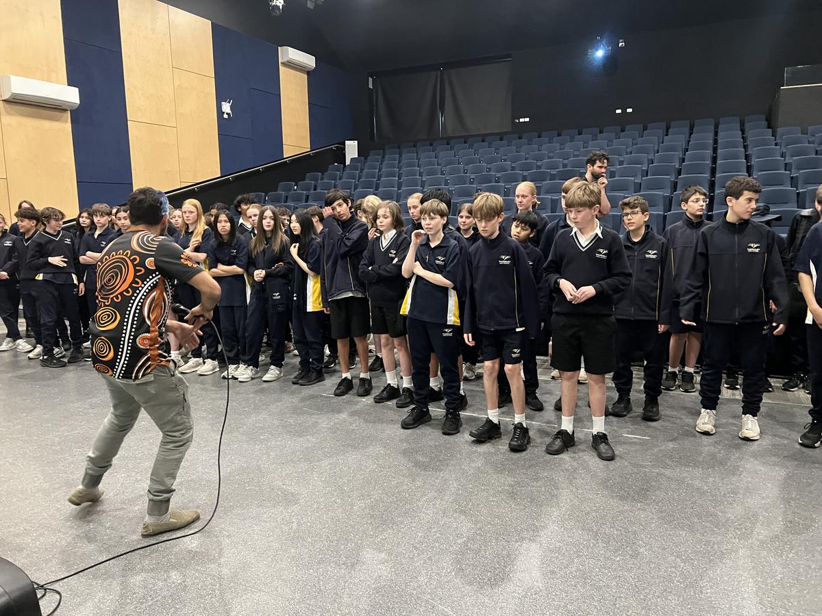 On Monday 8th September, Year 7 students participated in three interactive workshops aspart of their History studies on First Nations Australia. The first session was Dodge withDjarrin, where students heard the Yidaki being played, listened to Dreaming stories and gotto touch an emu egg, possum and wallaby skin. Students participated in a contemporarydance session with Sermsah, where they learned to express themselves through hip hop. April taught students about symbols used in First Nations art, and students enjoyed creatingtheir own stories through art. Thank you to the Nikki Visaj Movement educators for their fun and informative sessions!