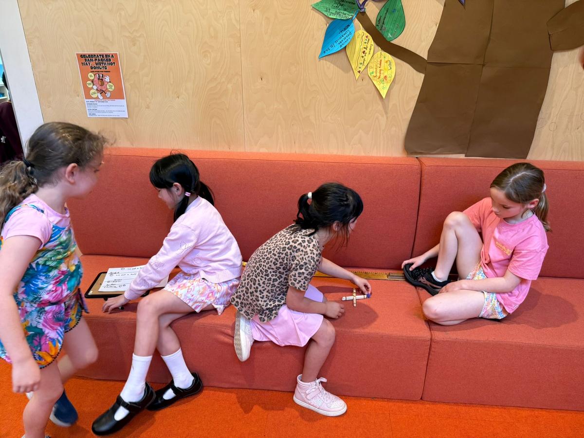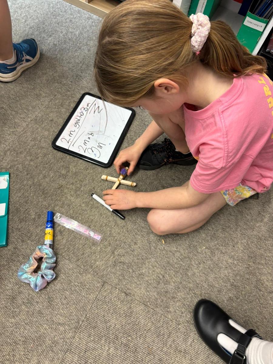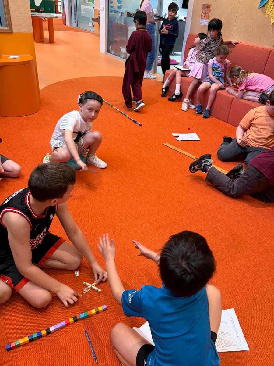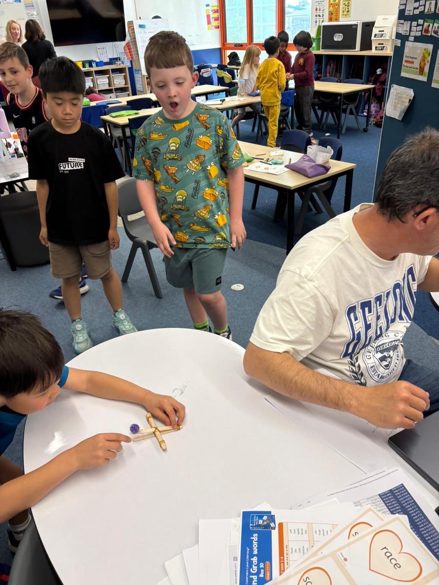 We celebrated our learning by having a STEM challenge where students worked in small groups to design and create a catapult made out of icy pole sticks and rubber bands. They then measured how far the pom- pom flew from their catapult. Some students even compared the distance of their pom-pom to their friends.