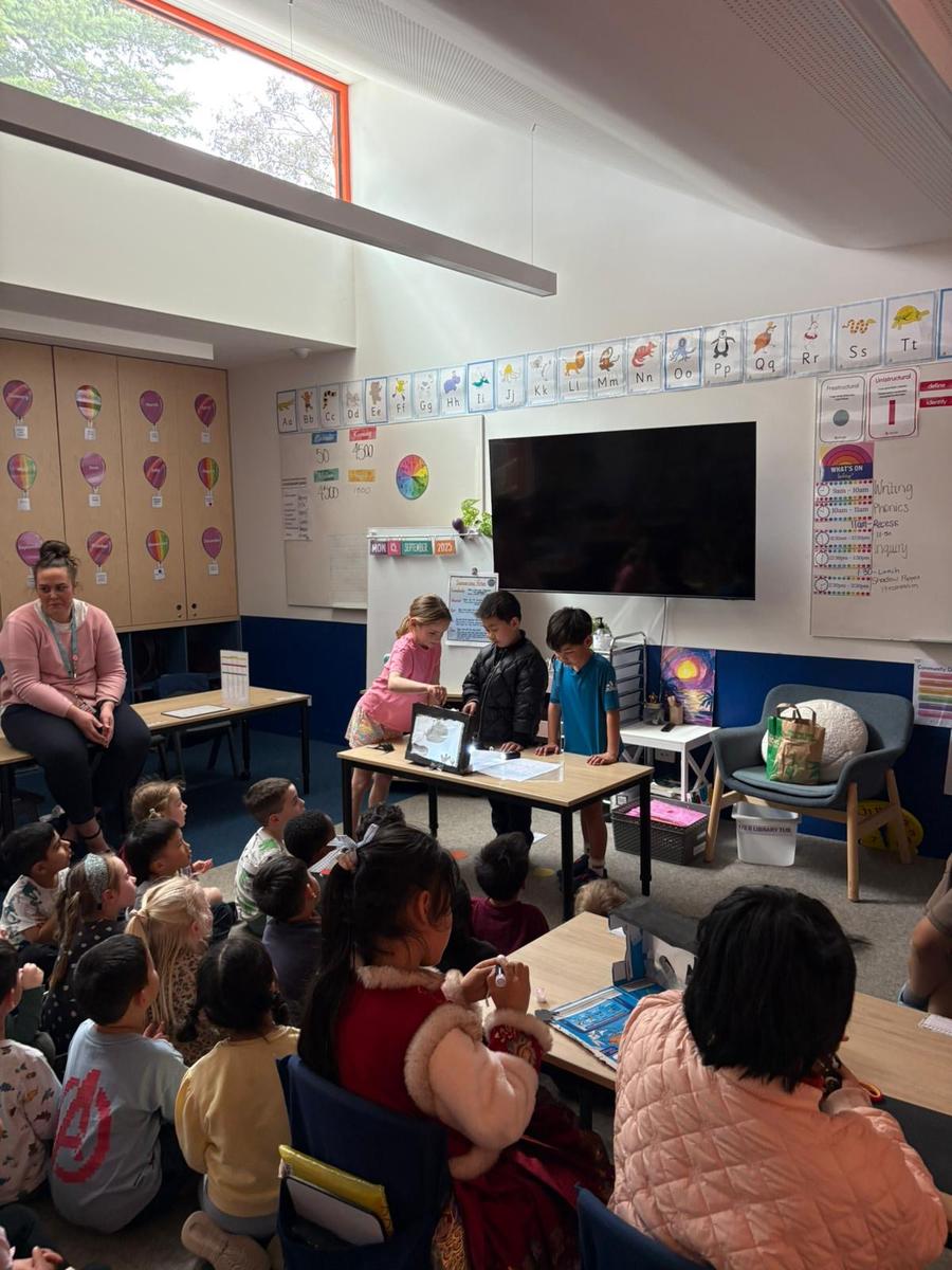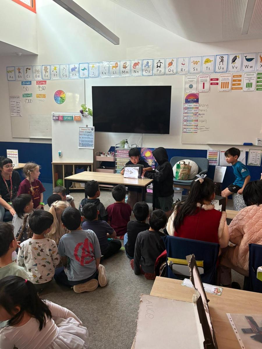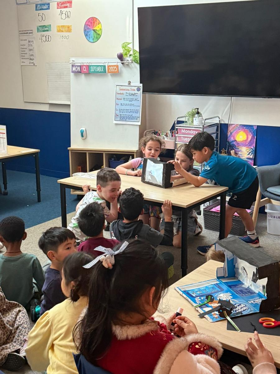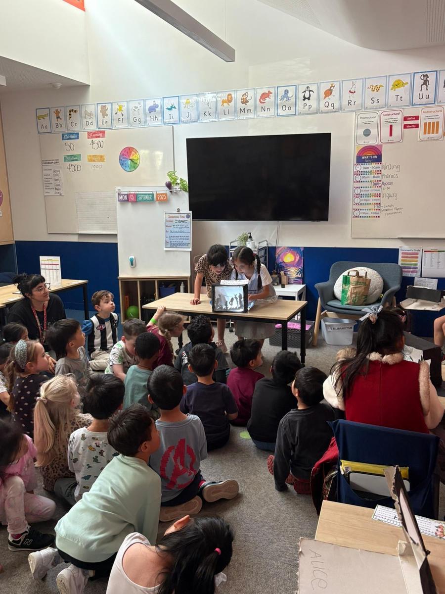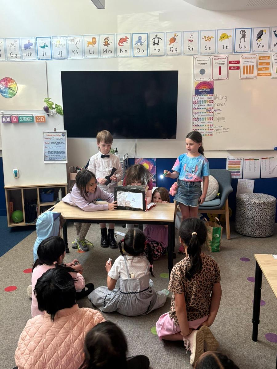 To finish our Inquiry unit on Light and Sound, some students presented their shadow puppets to the kinder students. They all were excited and super proud to show case their creativity. It was fantastic to see the students present with confidence and use appropriate volume. It is not easy presented to an audience and we were really proud of how well the students performed!