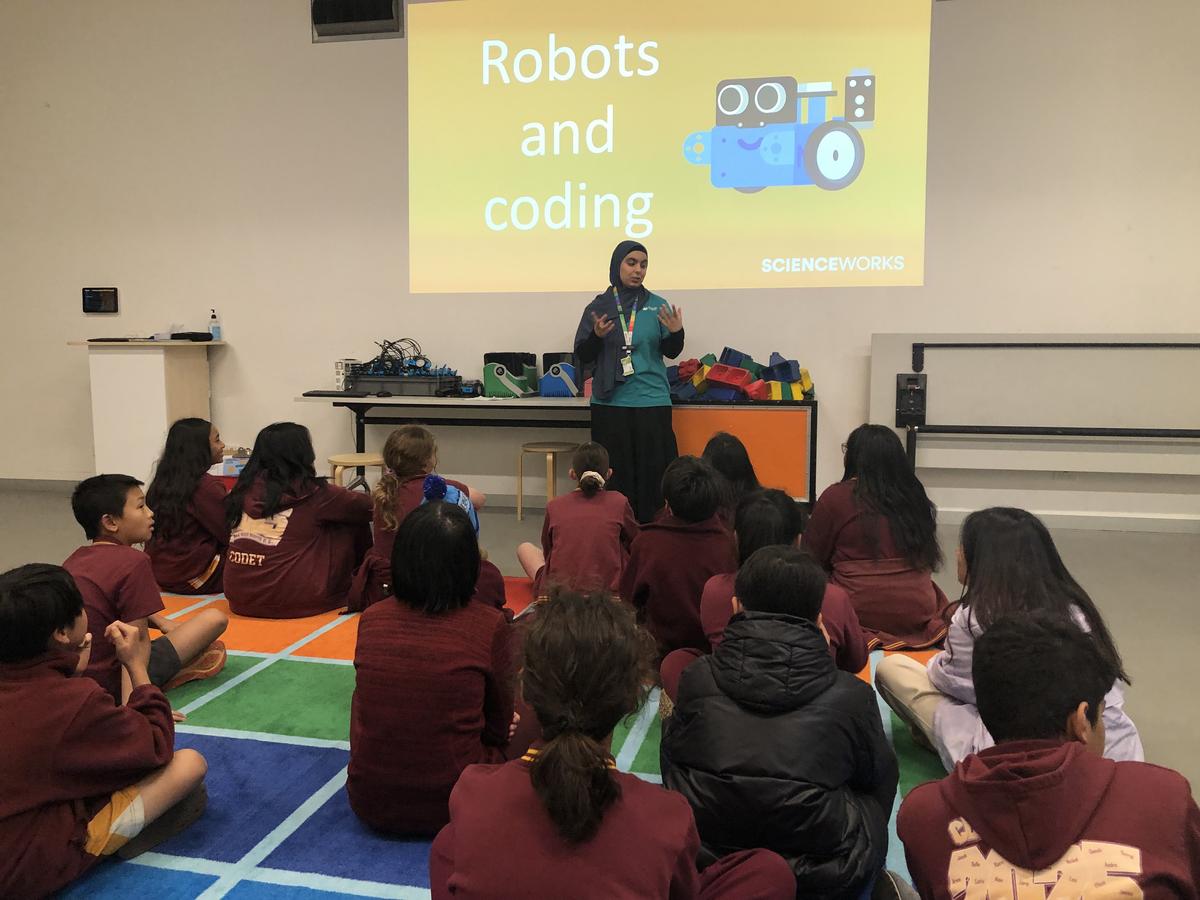 On Wednesday we went to Scienceworks. When we got there, we first experimented with coding and learning the reactions to the codes you put into the robot, like learning how to sense surroundings and navigate a maze. Then after, we got some free time for about 2 hours to explore the museum. The exhibits were interactive, with some being able to test your fitness ability, being able to simulate worlds and there was even an ambience room, where you could change the mood to test if it’ll change people’s emotions. Overall, it was a great interactive area. After we explored the area, we went to the Lighting Show. Owen the presenter showed us different types of energy and then he showed us some lighting, since it was loud we had to cover our ears. The lighting made the beat into the Super Mario theme song. Overall, we had a great time.