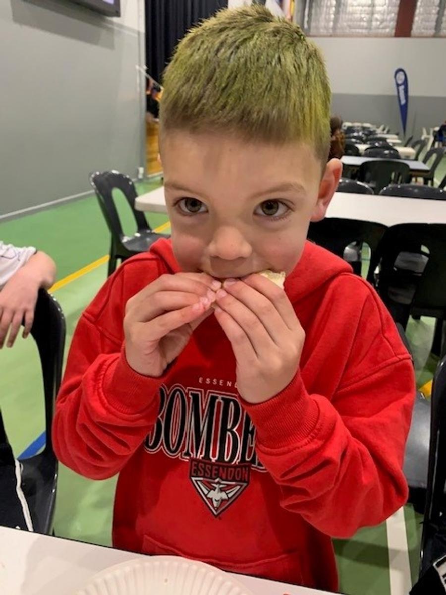 Today we were very excited to have our famous footy breakfast back to complete the term. We cooked over 250 Egg and Bacon rolls and over 150 sausages which was a great result. We must thank all of our volunteers from staff and the parent body. This fantastic event would not have been able to take place without everyone’s support. We also thank our local businesses for supporting our breakfast. I would like to make special mention to Woolworths Central for their support and donations and Baker’s Delight in Norfolk Plaza for their continued support of our school. Also to King Cole Direct Fruit Supply for their donation of fruit and Fresha for the donation of juice.