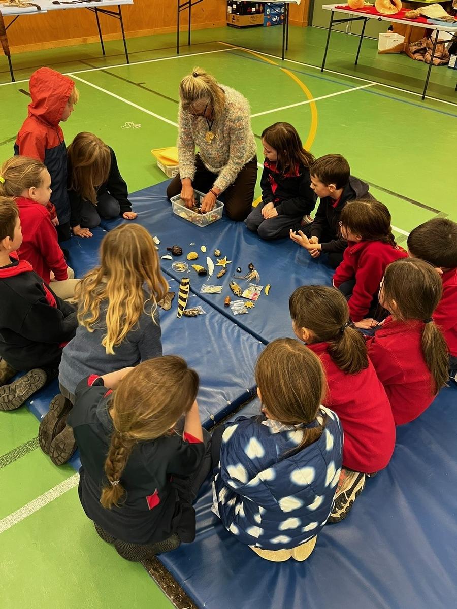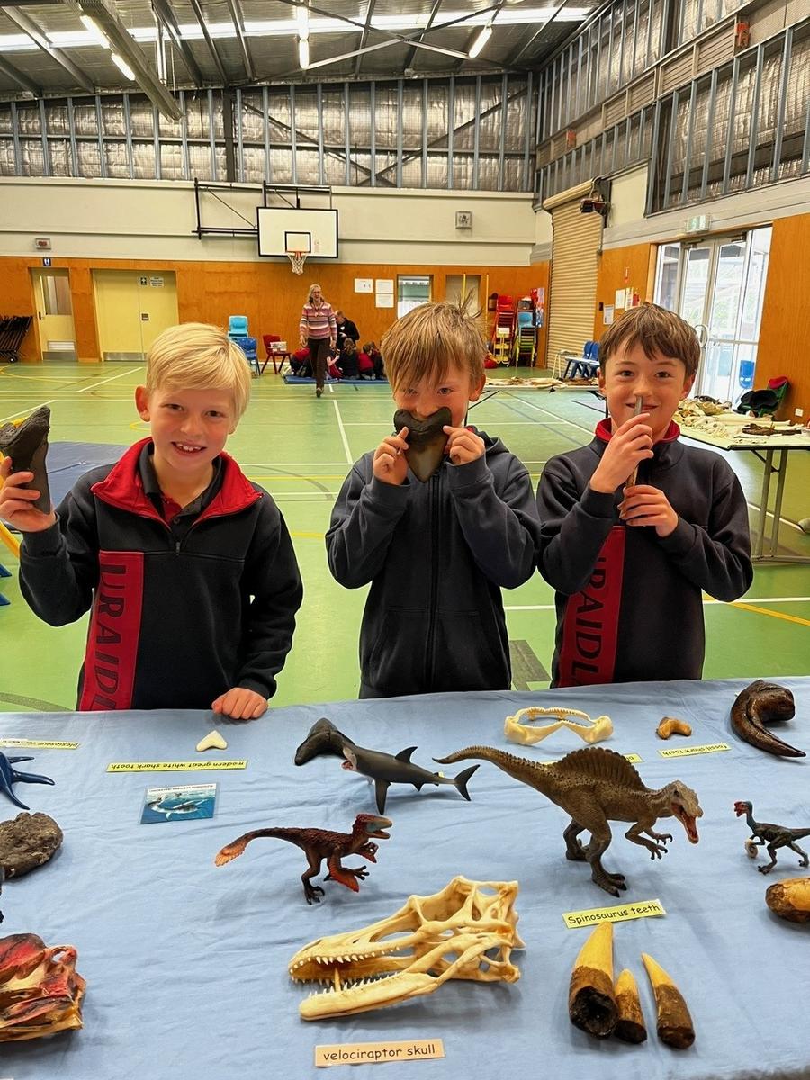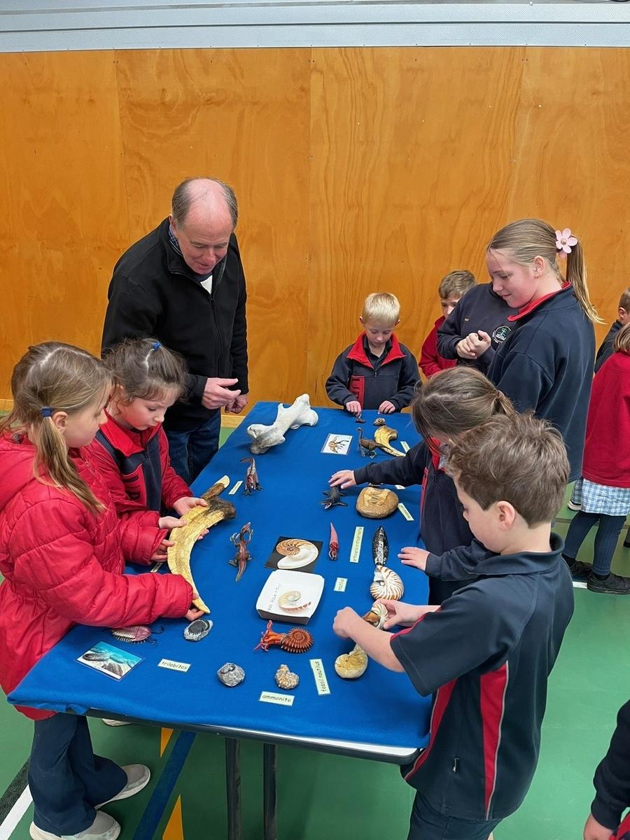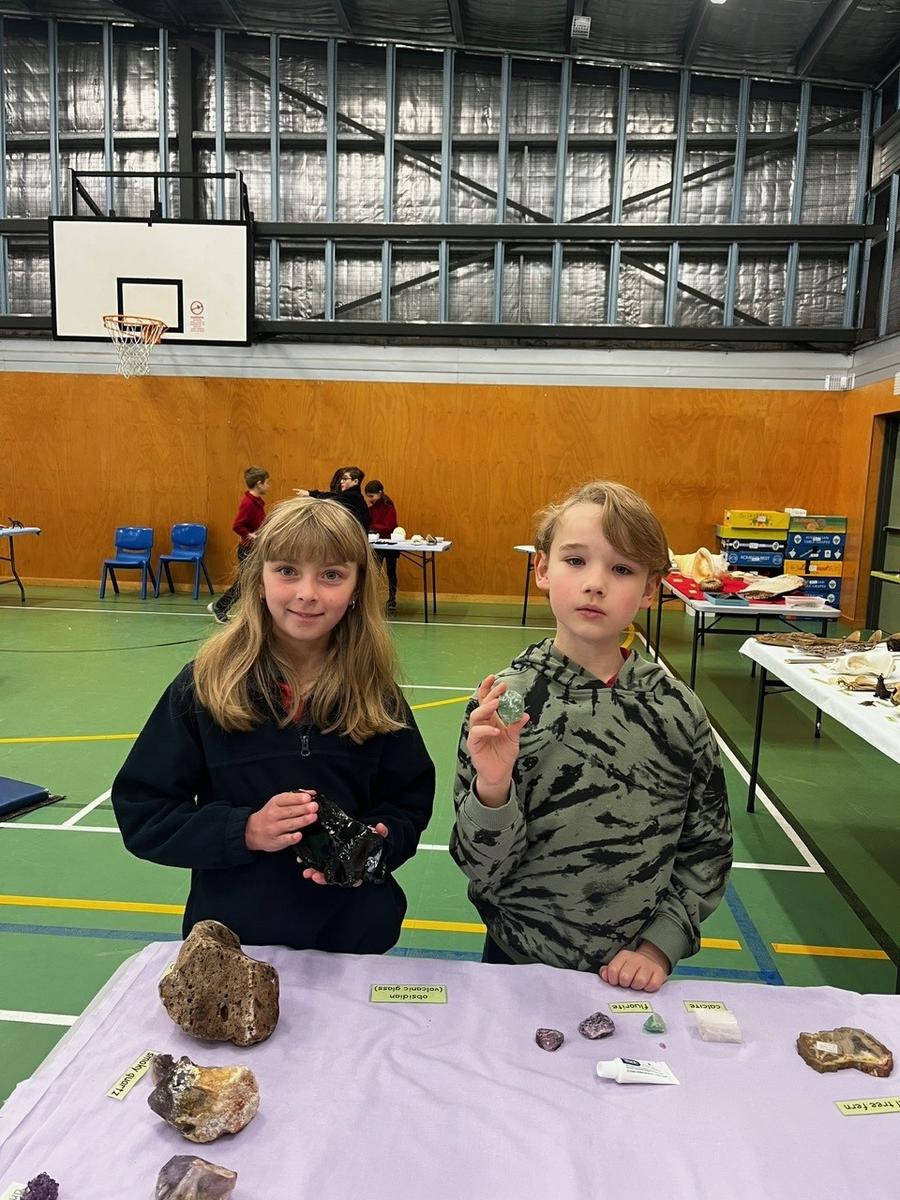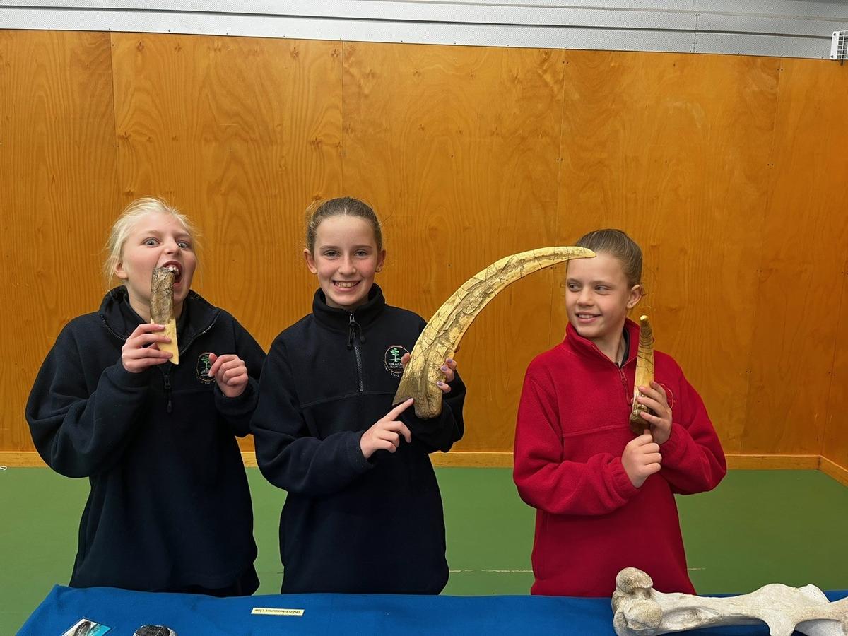Students had the amazing opportunity to get hands-on with real fossils, bones, gemstones, rocks, shells, and more. The gym was buzzing with excitement and awe as students examined shark teeth, ancient marine fossils, and glittering crystals up close. The highlight? Every student received their very own goody bag to take home, packed with special treasures like shark teeth, quartz, and beautiful gems.