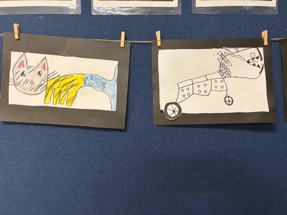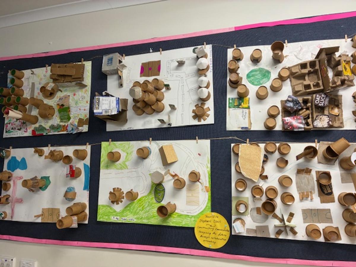 The Junior Primary students explored watercolours as part of their visual arts project to create a sunrise and used acrylic paint on top for a silhouette effect. The year 2/ 3 class have experimented with lines, shapes and oil pastels to create artworks continuing their exploration of the art elements. The year 3/ 4 class have completed their collaborative cardboard future communities to display on the wall. The Upper Primary have focused on learning about the history of artist Wassily Kandinsky, his art style and inspiration. Student created their own artwork inspired by the artist using oil pastels.