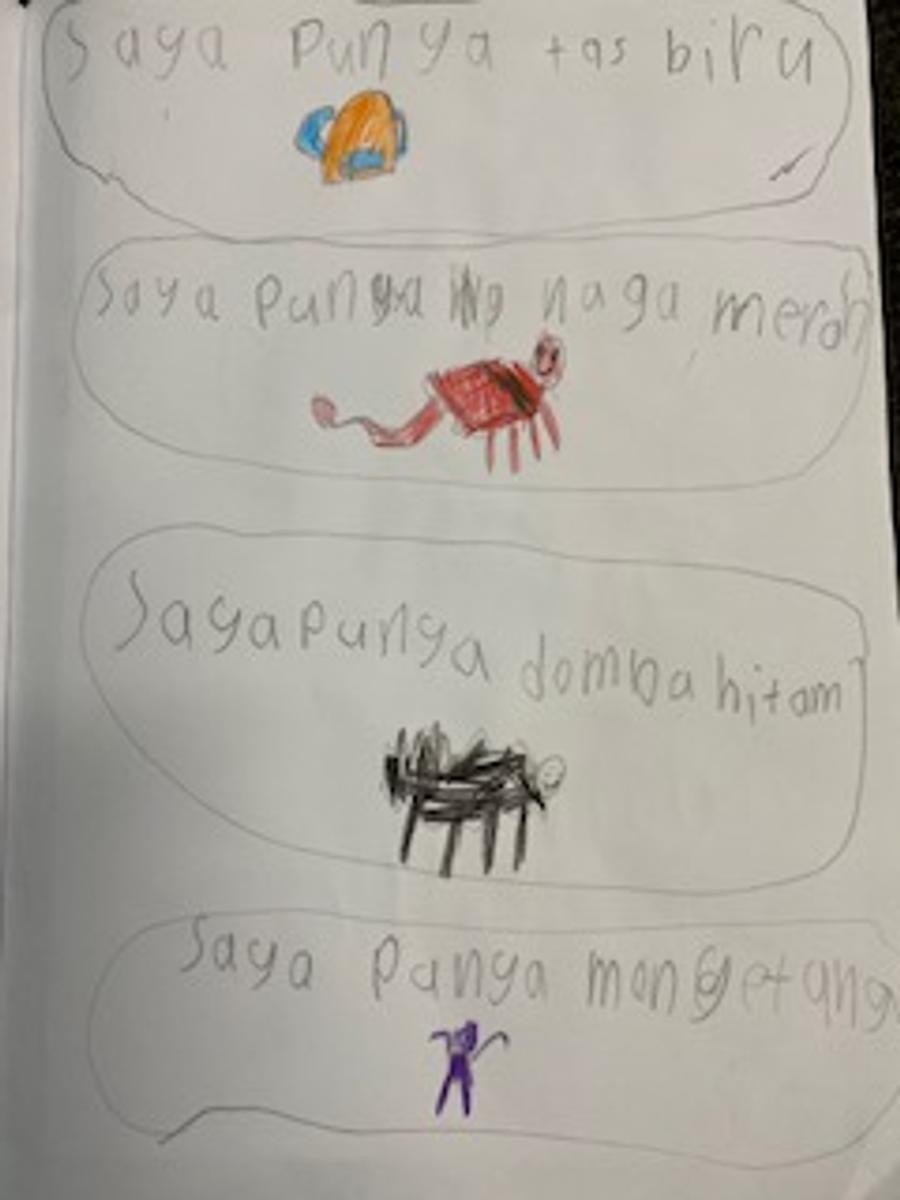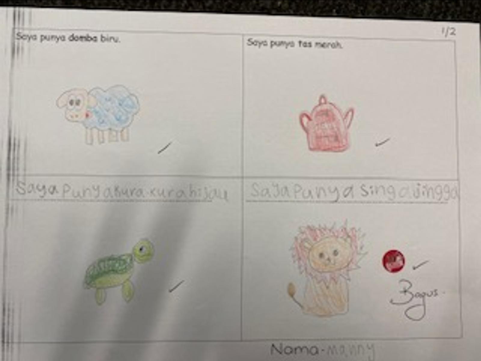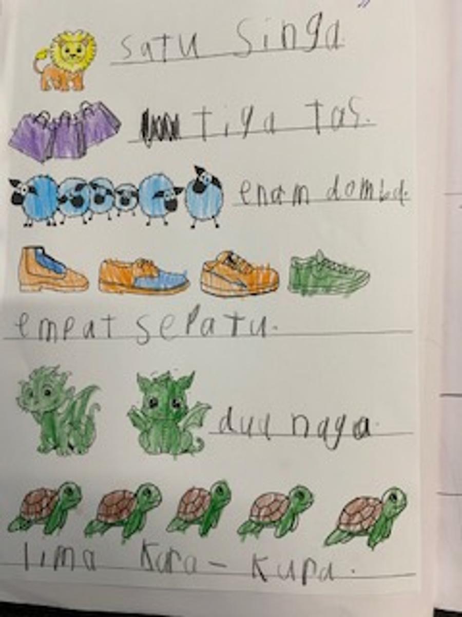 In Indonesian the younger classes have been busy writing sentences using our key words plus adjectives (including colours) and also numbers. We have used songs and stories to practise these words. Stephen's students are working hard on their animal books and are discovering some great facts about komodo dragons, Sumatran tigers and orangutans. The older students have begun learning how to tell the time in Indonesian which can get a bit tricky. They have also been using online games like Study Stack to reinforce their language learning.