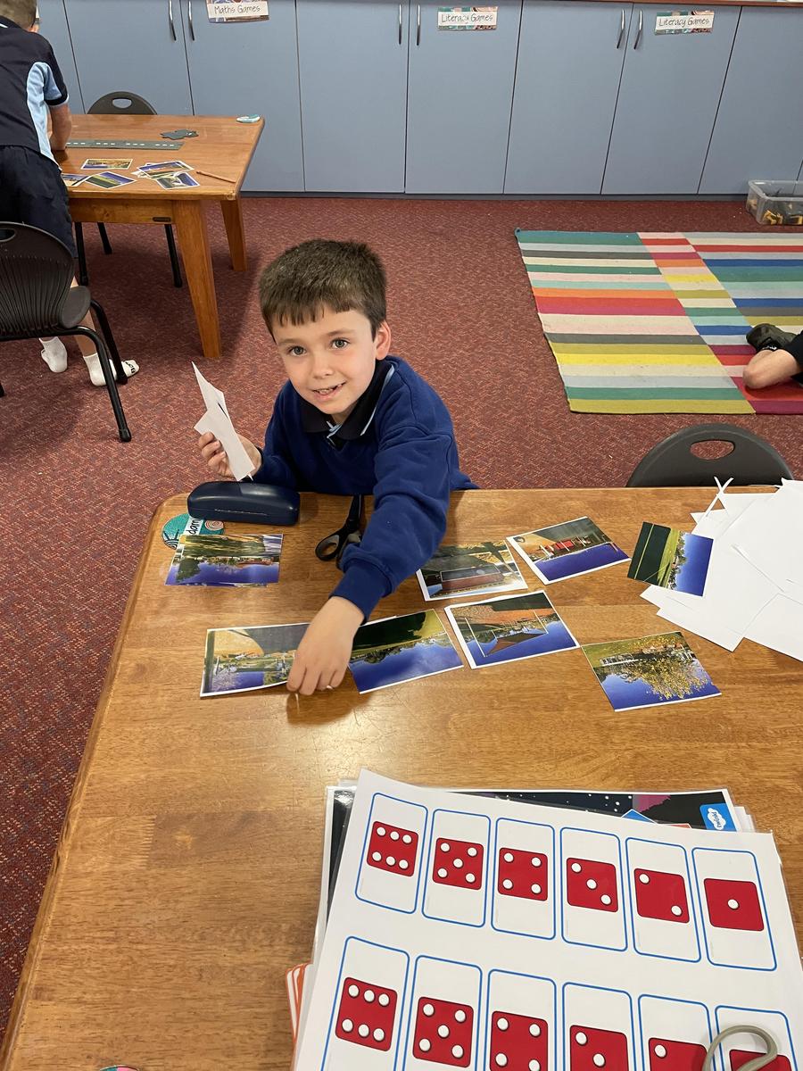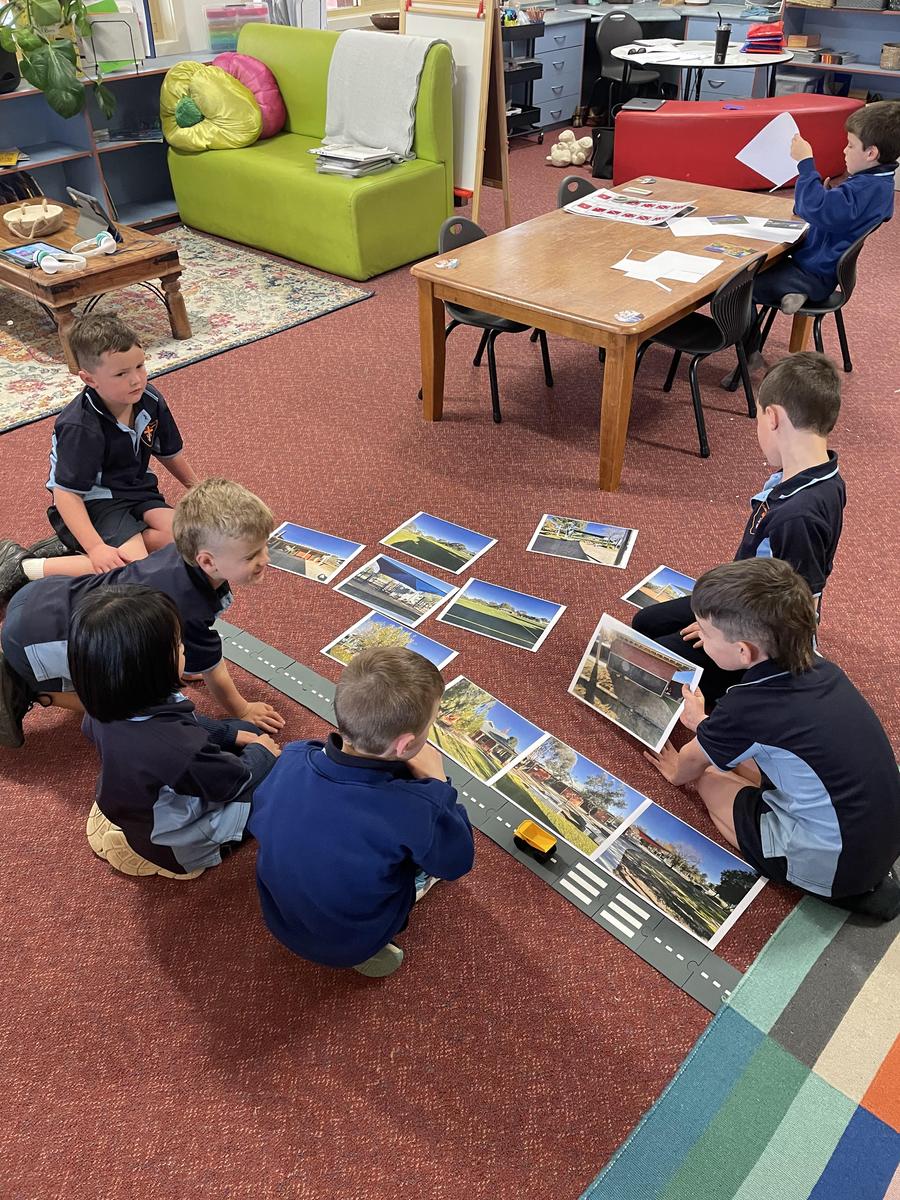 The children have been revising their positional language and discussing the position of the buildings and spaces of our school. We were able to make a map of our school using photographs and then placed farm animals on the photos for the children to describe their position eg 'the horse is next to the sandpit'.