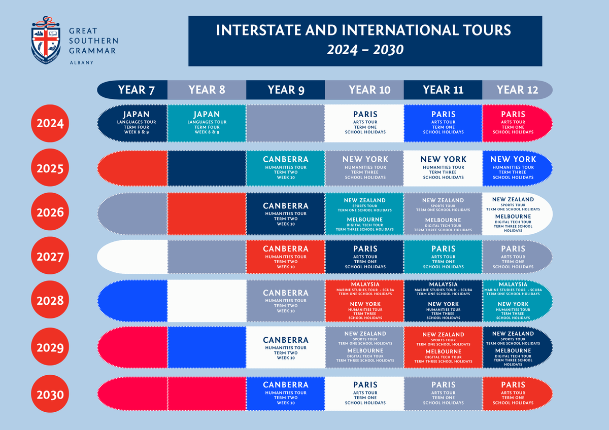 An information letter and tour overview is available on MyGSG under Secondary Information in the Trips and Tours folder.
