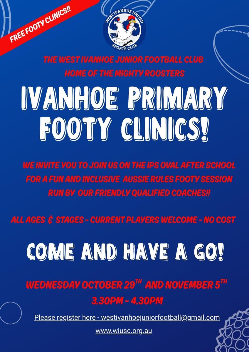 The West Ivanhoe Football Club look after our oval all year round, including fertilizer and sprinkler maintenance. So when they asked if we would be interested in a couple of free clinic for students of all ages, stages and genders we of course said yes. You can register using the email address in the post below.
