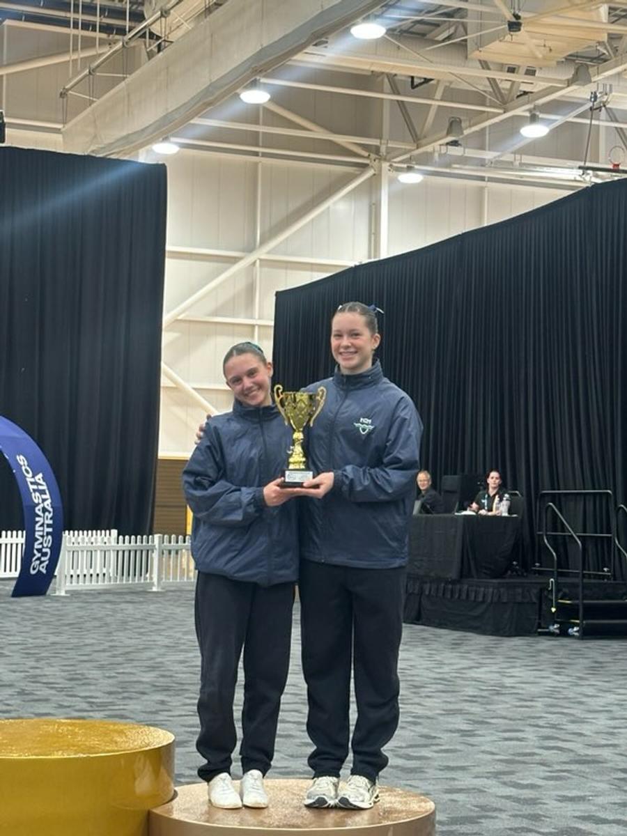 Congratulations to the Aerobics team for their incredible results at the Aeroschool and National Clubs carnival, held on the Gold Coast. Twenty seven students travelled to the Gold coast to compete in the two competitions and in the National Clubs competition, MGC came third out of all competing clubs. This is a fantastic result and credit to the work of the coaches, Holly, Evelyn, Mila and Amy and the year long dedication to aerobics from our students. The students not only performed beautifully and demonstrated enormous improvement over the year, but they also cheered loudly for each other. Thankyou to the parents for their support at Nationals and to Taya for organisng a banner and pom poms, to cheer with.