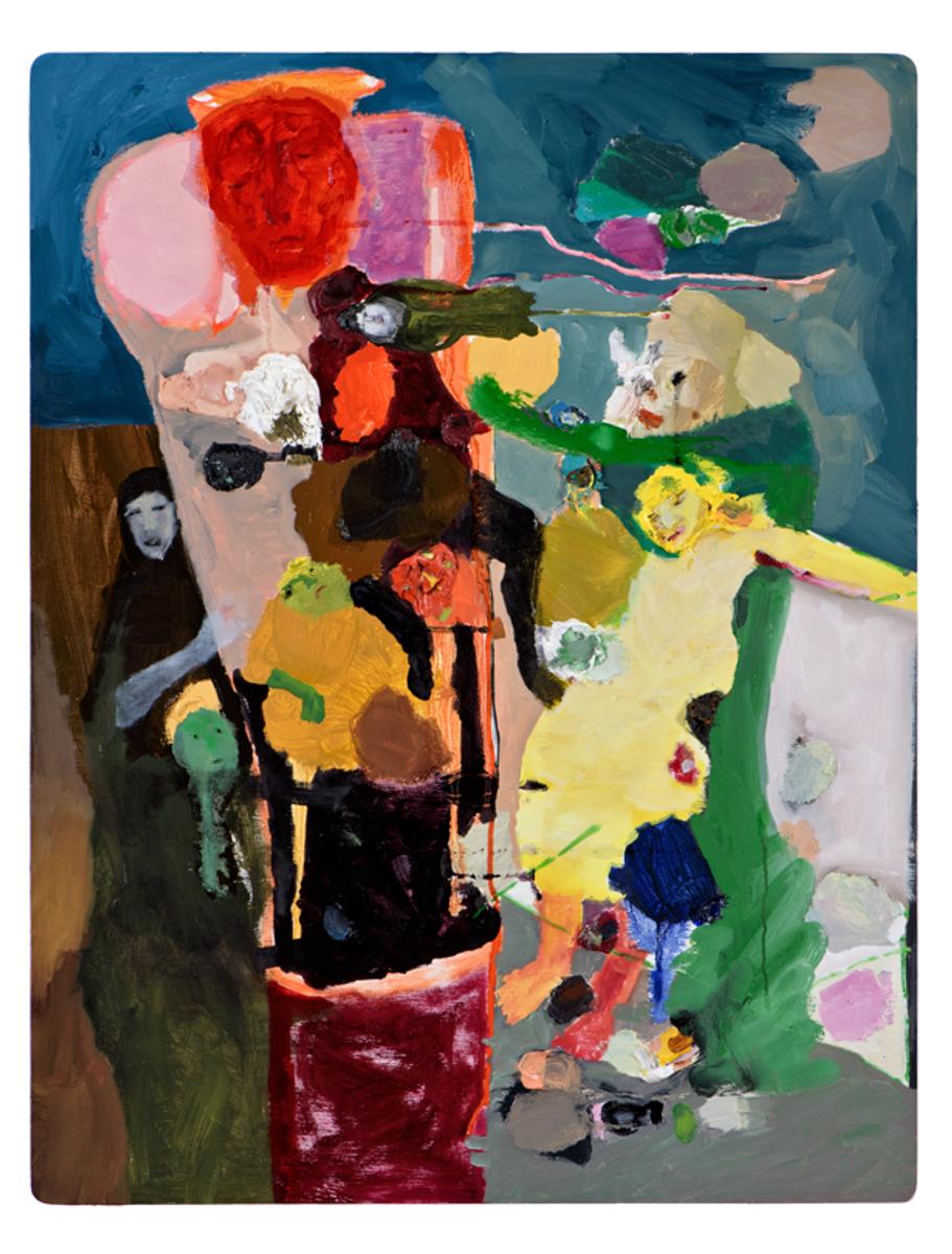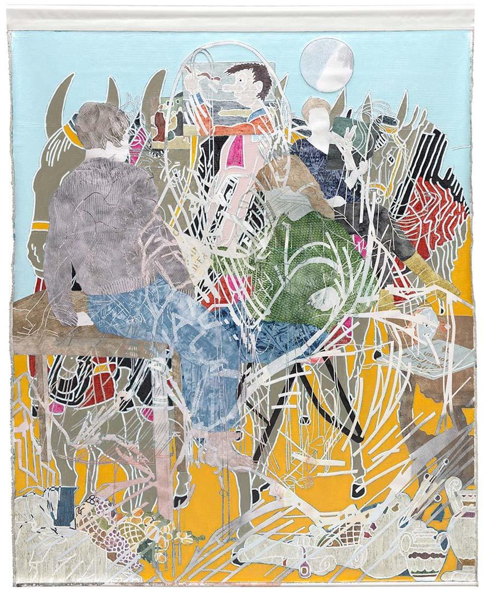 Del Kathryn Barton, Self-portrait with studio wife, acrylic on linen. Reproduction by Chloe Beck, Milly Brent, Caroline Liu, Amelia Palavos.