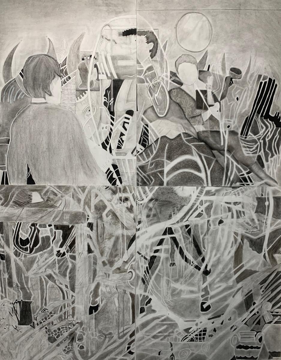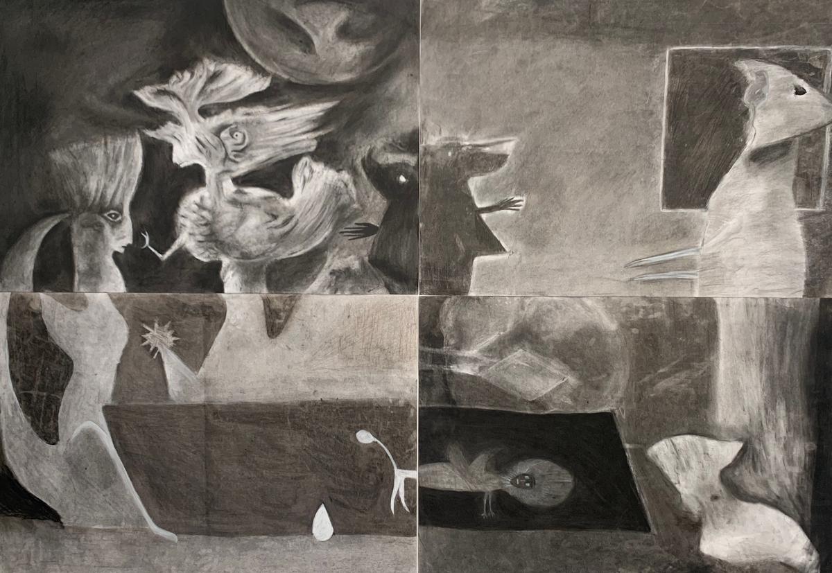 This term, Year 10 Visual Arts students have undertaken a comprehensive study of charcoal as a drawing medium. Students developed proficiency in various charcoal techniques before progressing to a collaborative project.