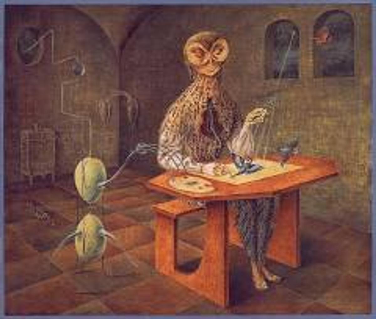 Remedios Varo, The Creation of the Birds, 1957, Oil on Masonite. Reproduction by