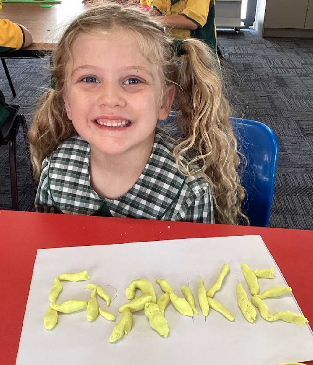 Foundation - The Foundation students have enjoyed exploring in 'the big craft cupboard', a.k.a. The Art room. They started exploring with Play dough and they were able to make their name. Check this out...