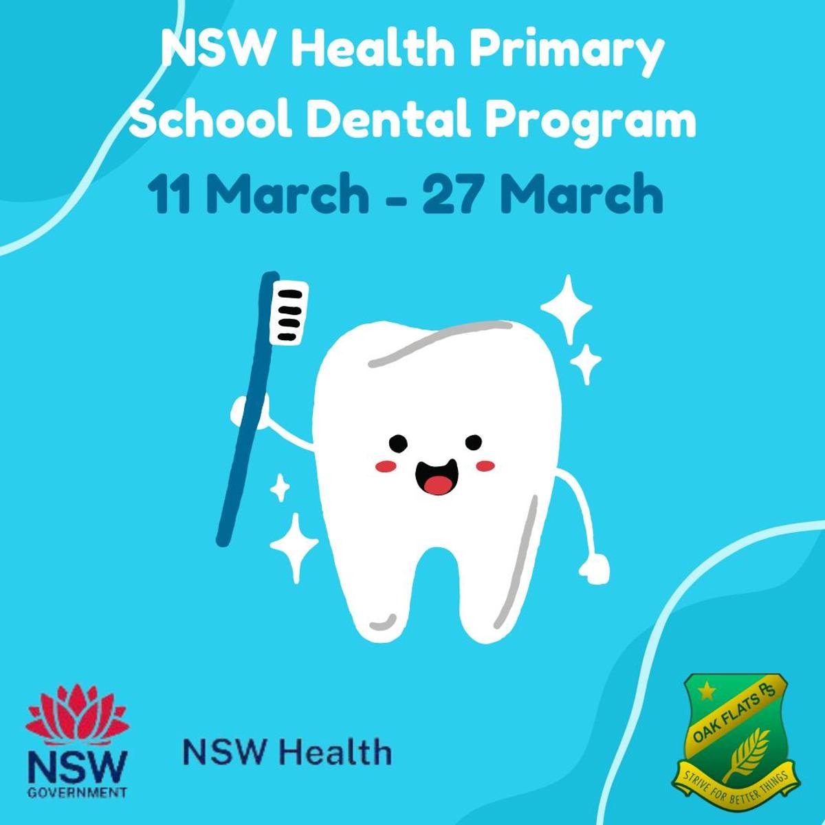 Each child should have brought home an A4 size envelope with information and a permission form for a FREE dental check though Illawarra and Shoalhaven Local Health District.