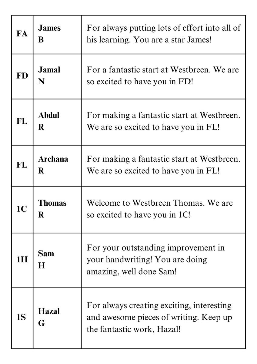 Please note the below Students of the Week will be presented their certificate at assembly on Wednesday 15th October, 2025