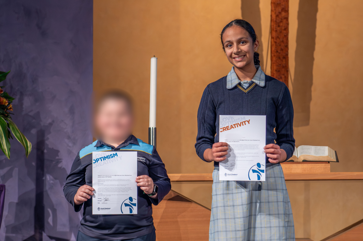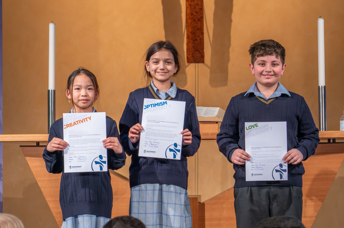 We would like to acknowledge the following students from 3Chopra and 3Gleeson Assembies for living our school values of Love, Optimism, and Creativity - Well done!