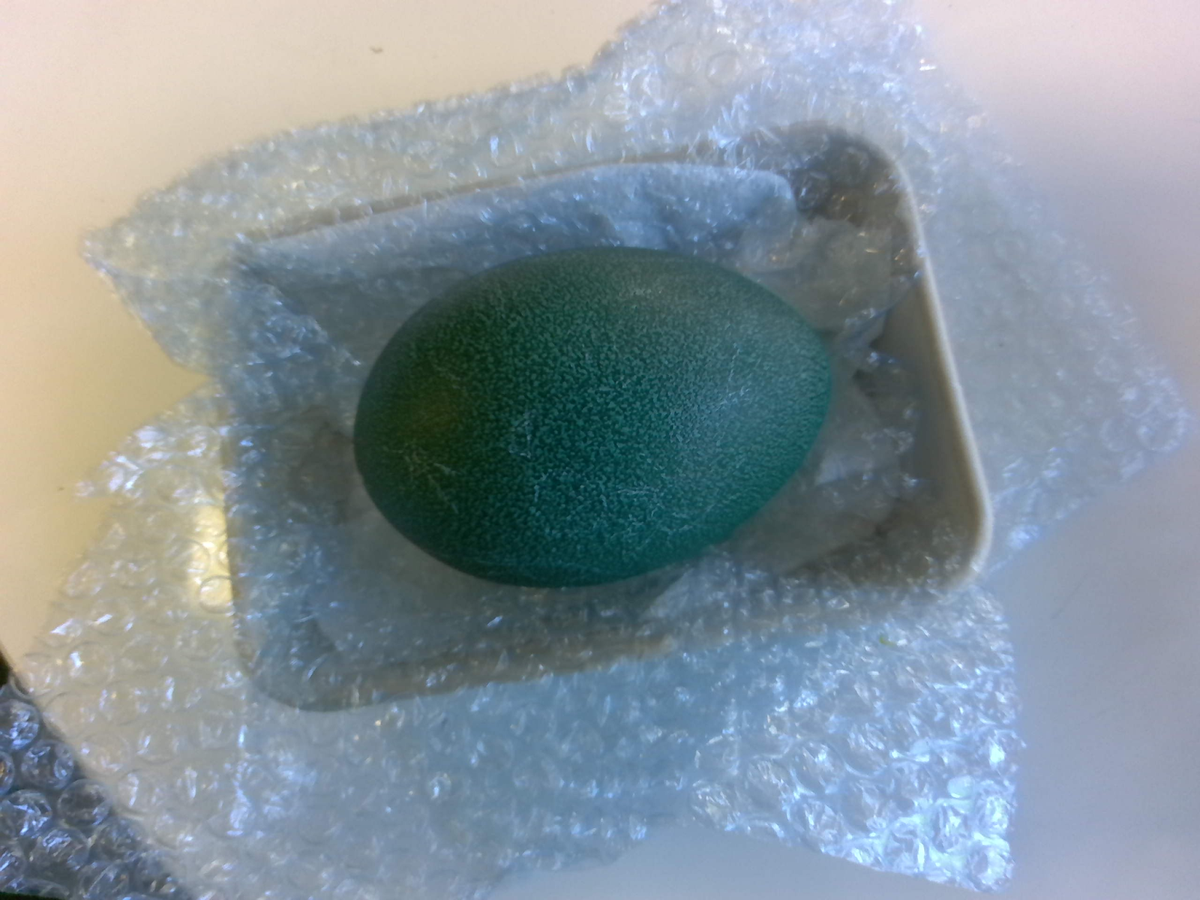 To remove the egg, they drilled a hole in the top and the bottom of the egg and used a wooden, pointy stick to pop the yolk to make it easier to extract the yolk. They then had to use a bicycle pump to pump out the egg yolk. Two of us also tried a cooked piece of emu egg, made out of the yolk.
