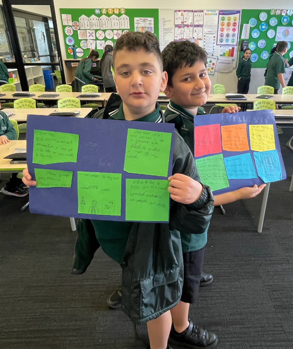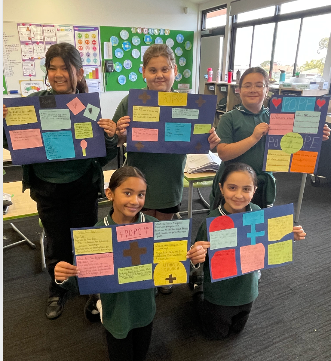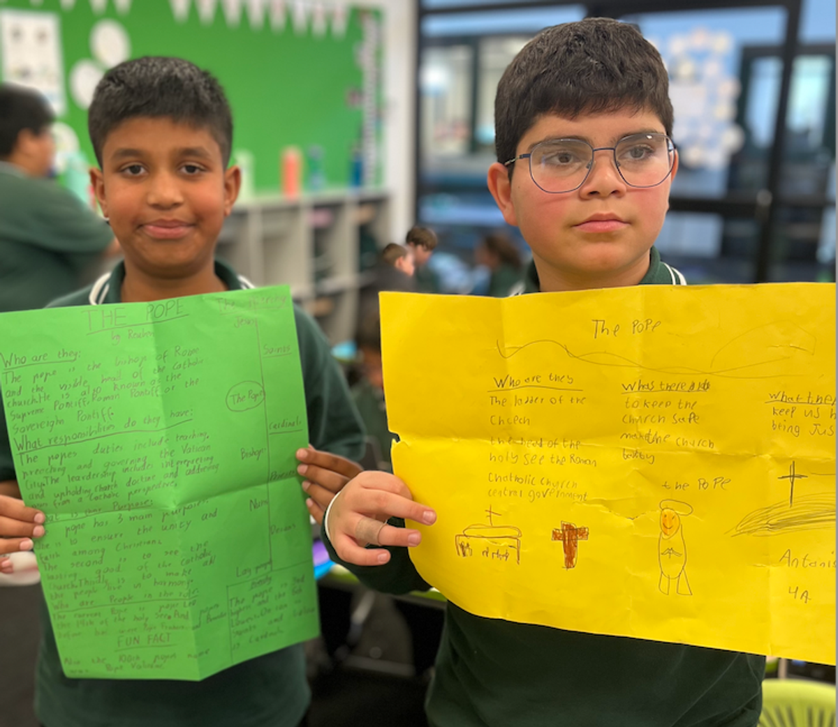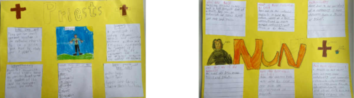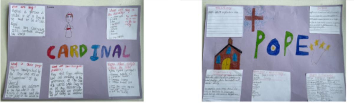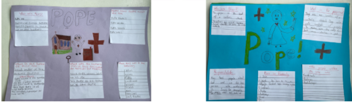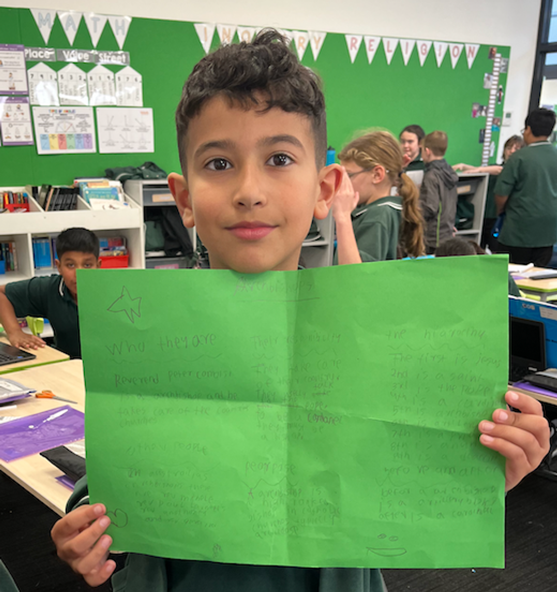 Throughout the term, the Year 4 students have been learning about the hierarchy of the Catholic Church. They researched the different roles and responsibilities of the members of the Catholic hierarchy. They had the opportunity to compare these roles with other Christian faith denominations. They presented their findings in a poster, focusing on one role within the Catholic Church.
