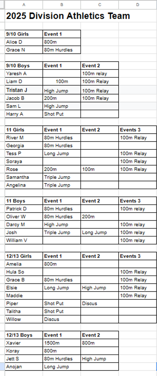 It was a long day but the students did very well supporting their fellow classmates. Of those 73, an impressive number of 32 students (see list below) have progressed through to the Division Athletics, held at Tom Kelly Athletics Track, Doncaster on Tuesday 14th October. An operoo will be sent out with details before the end of the week.