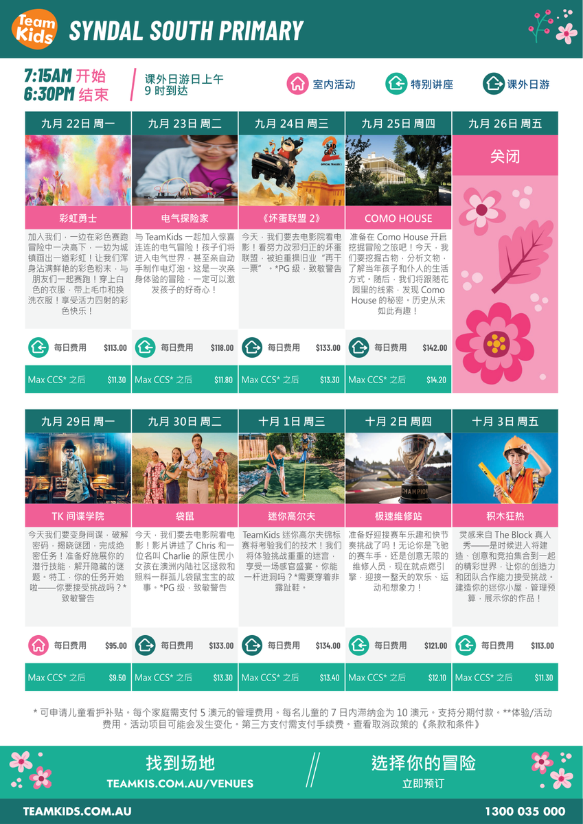 19th September - early dismissal: footy colour celebration @Teamkids.