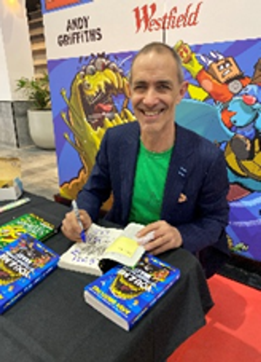 What a thrilling afternoon at Knox Westfield during Book Week, meeting and chatting with the iconic Andy Griffiths, young adults (YA) writer of the best-selling Treehouse series illustrated by his long-time literary partner, Terry Denton. Griffiths just started a new series “You & Me and the Peanut Butter Beast with illustrator Bill Hope, that may prove to be another hit for children who love humorous adventure stories!
