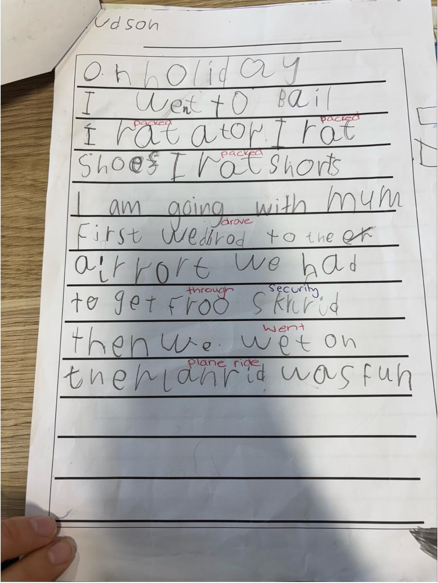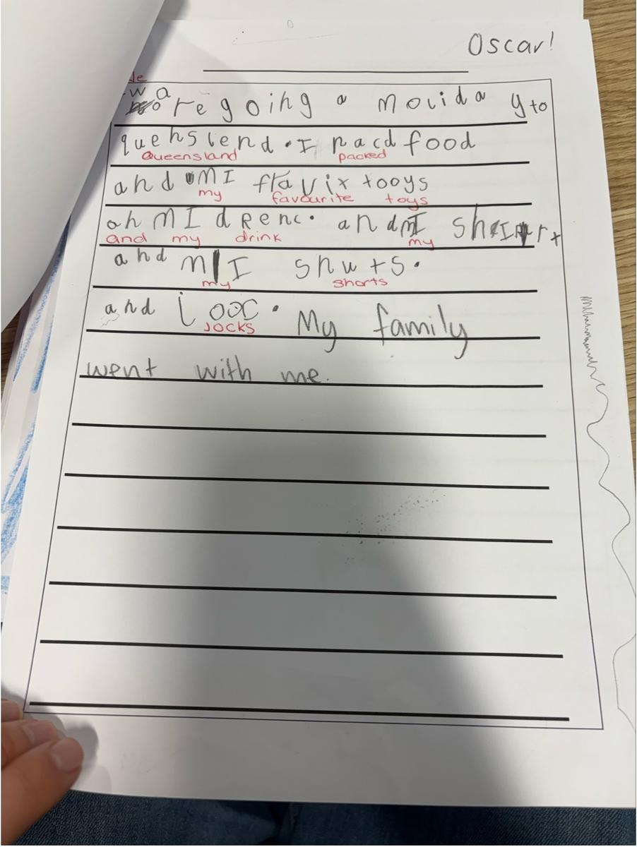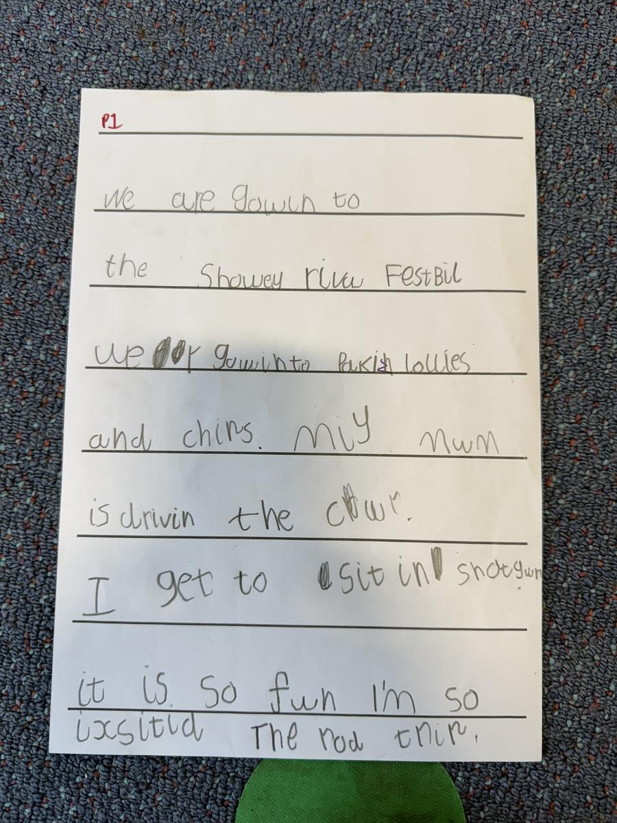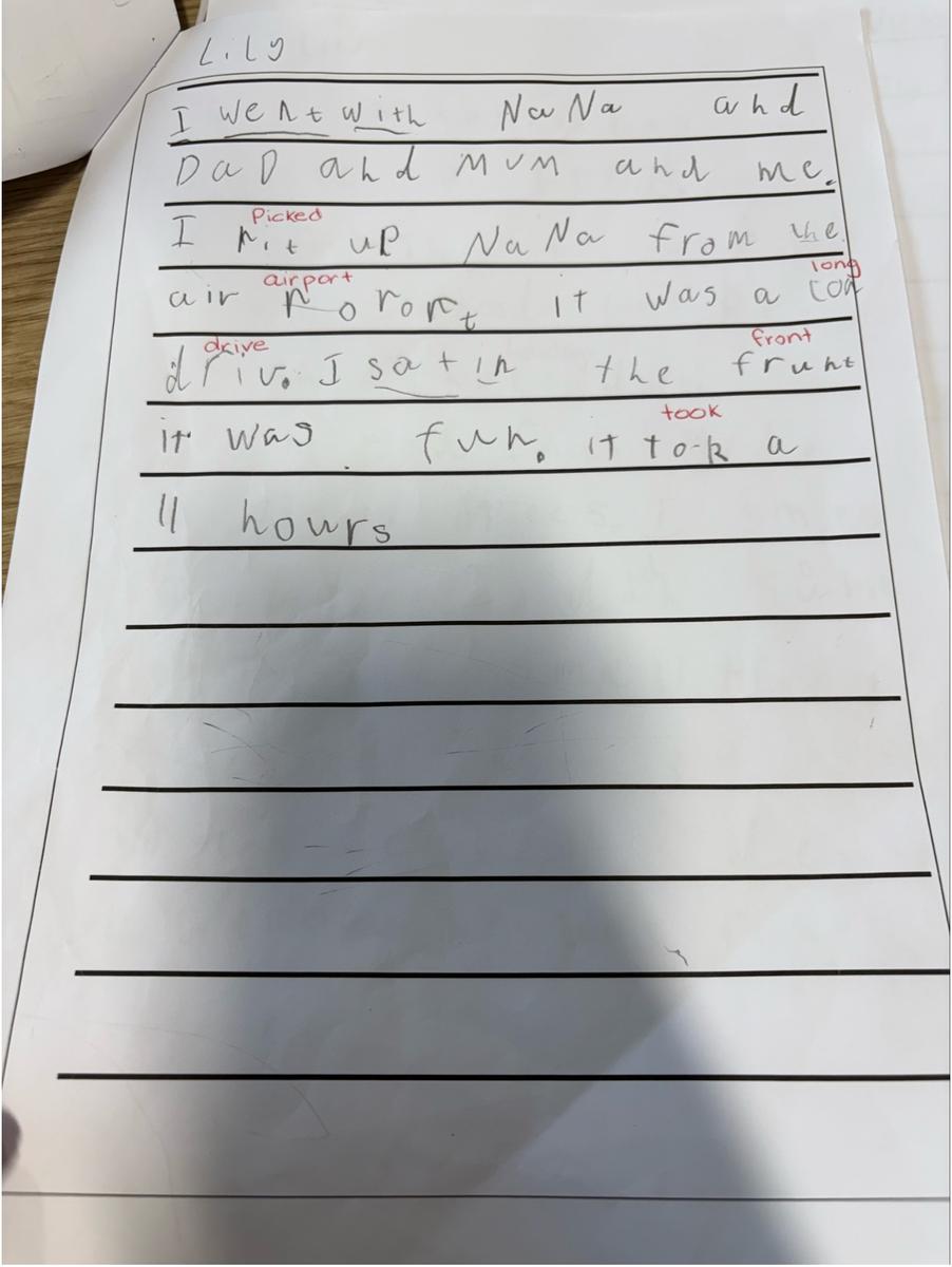 The students' writing has been wonderful to see! Together, we have explored personal memory stories, narratives and the use of time connections to show when time has passed in our story.