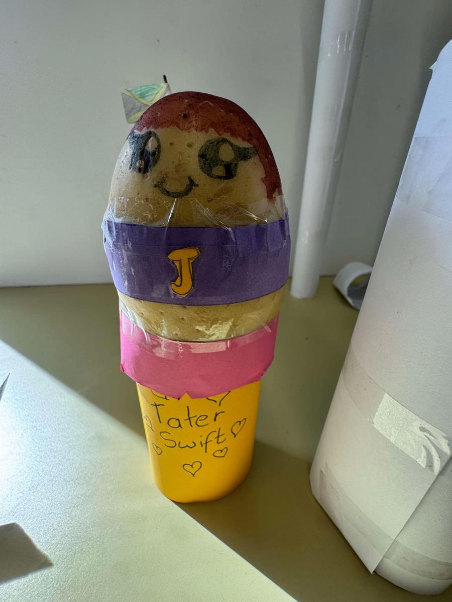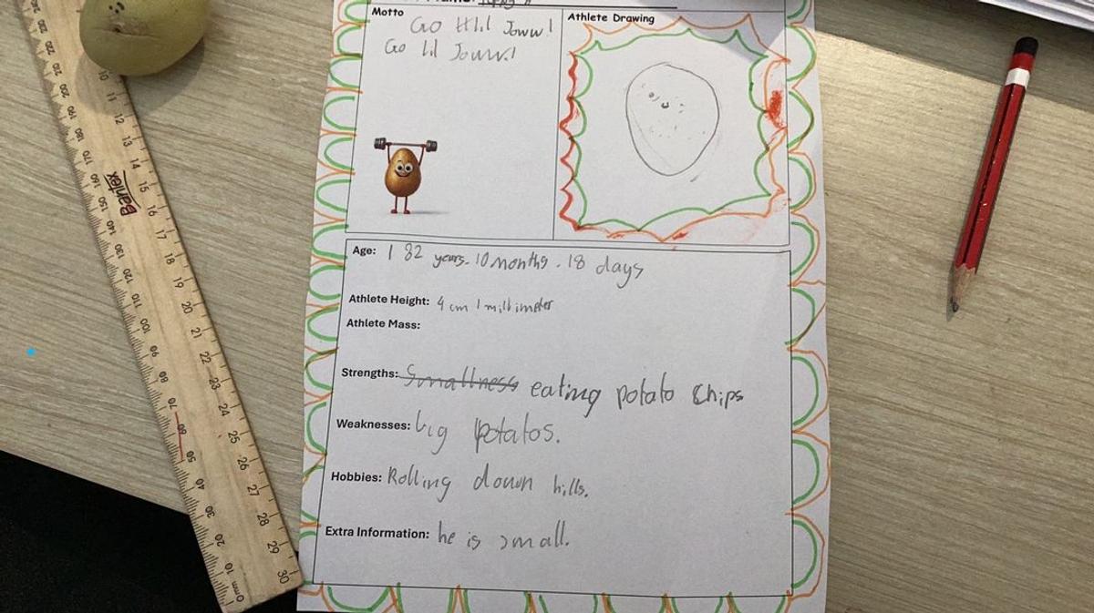 In Maths, students have been calculating the Area and Perimeter of shapes, drawing very creative pictures using the 1cm grids in their Maths books and measuring the area of objects using formal and informal units. We have started our time unit, and students have been creating and reading time, calculating elapsed time, converting AM to PM times and interpreting timetables. This week the students have had a great time consolidating all their learning of measurement and time participating in the Potato Olympics. Students have been measuring distance with potato shot put and sprinting and recording time with potato gymnastics.