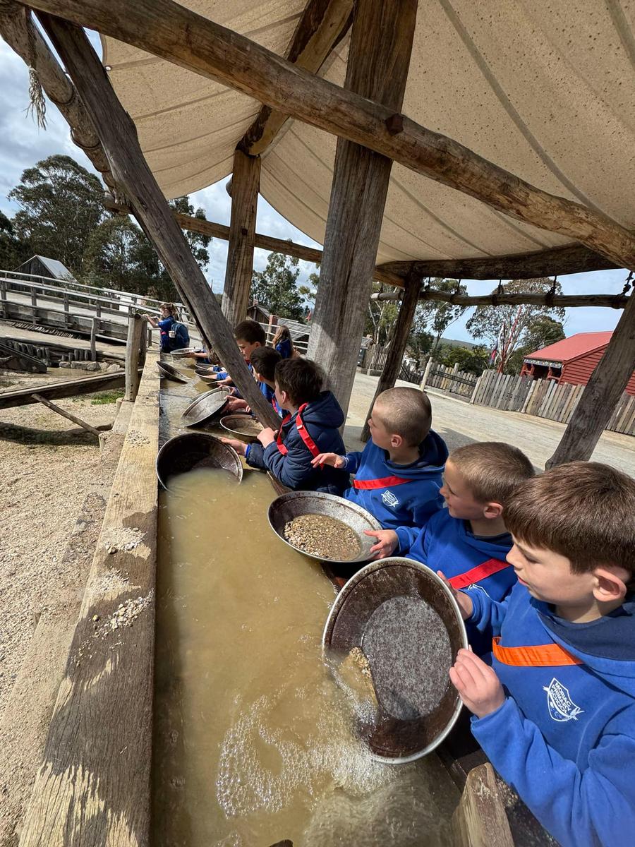The students had an amazing experience at Sovereign Hill, stepping back in time to the 1850s. They were excited to pan for gold, with some students finding small specks of gold. They had to use their muscles to roll the heavy wooden bowling balls down a 20 metre lane. Students were intrigued watching the blacksmith at work as he melted and shaped the metal with skill and precision into a cup holder. Students were taken back to the 1850’s classroom where ‘children should be seen and not heard’. They lined up like soldiers, arms at their sides. In the old-fashioned classroom, they sat tall with their backs straight and hands folded neatly in their laps, learning about school life in the 1850’s. Their respectful behaviour throughout the day was something they can be proud of, and it was clear just how much they enjoyed every part of the excursion.