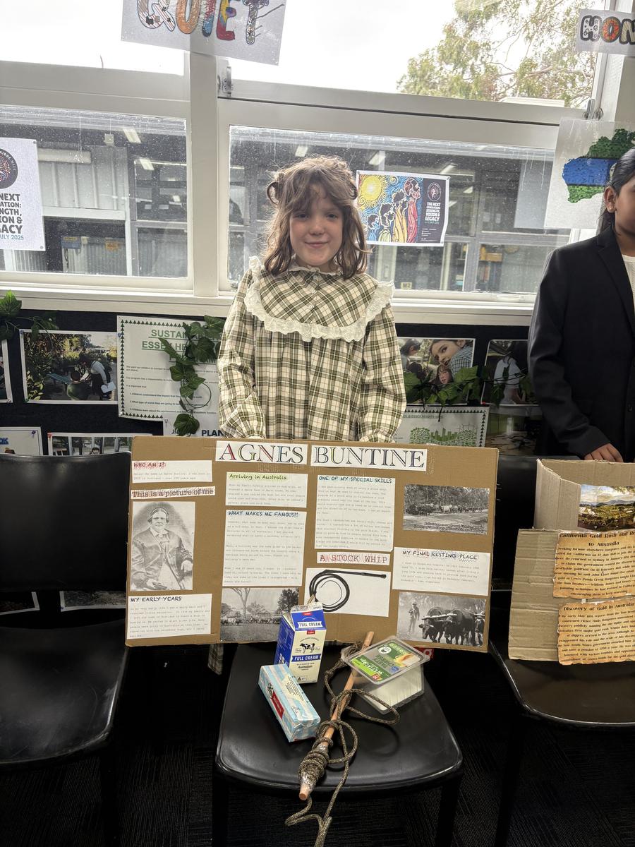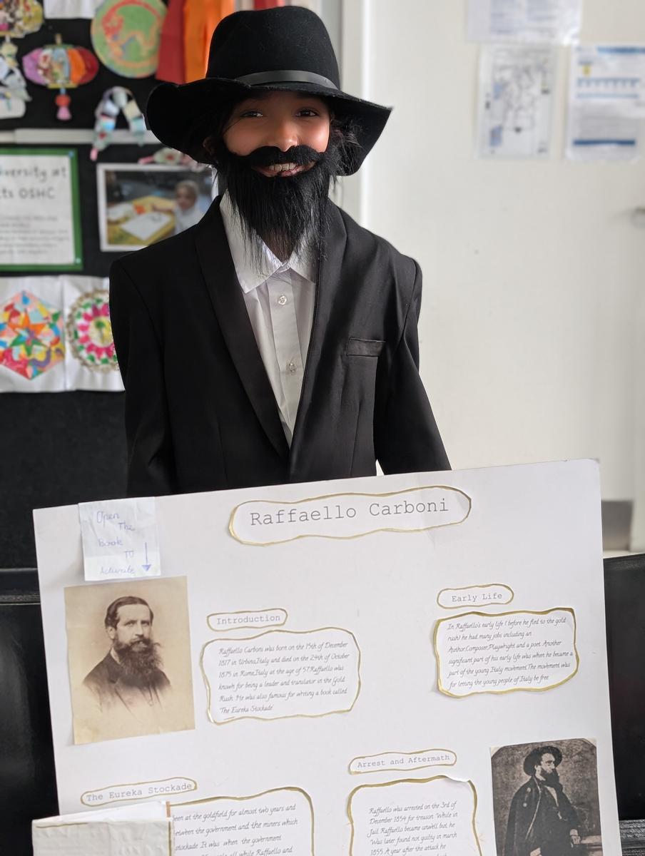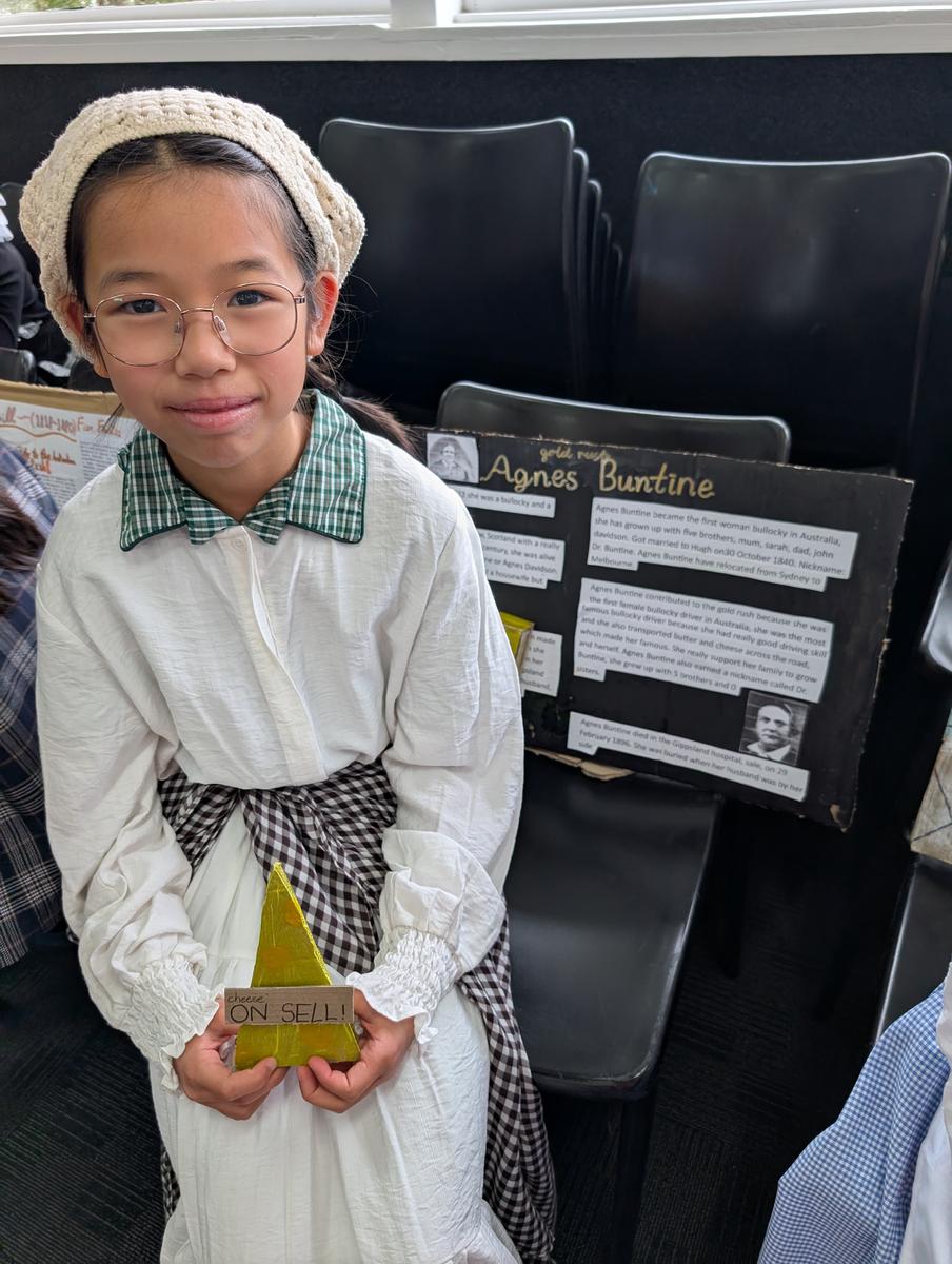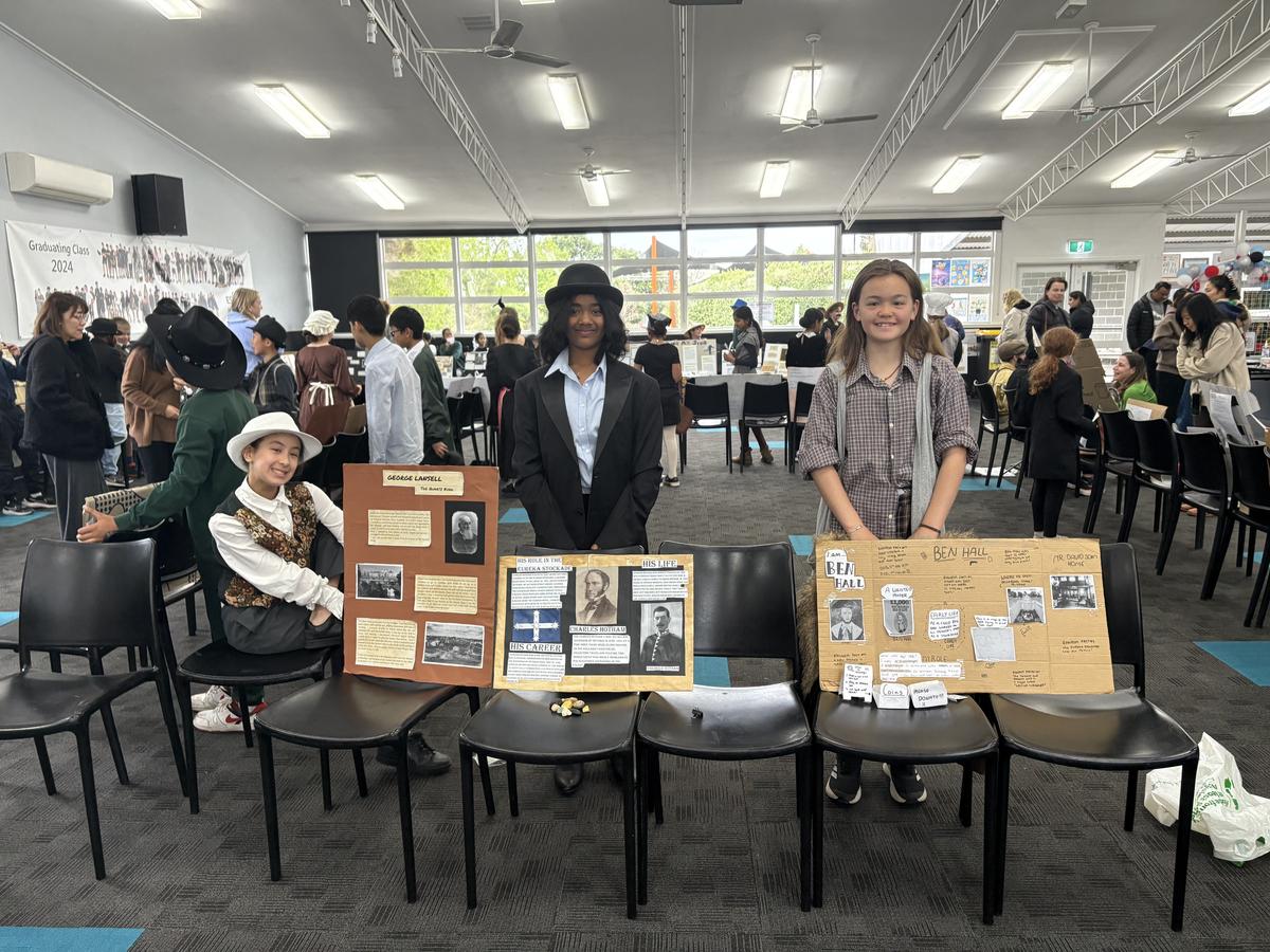 The Living Wax Museum was held on Tuesday, the 16th of September and ran from 9.15am to 11.00am in the Ian Harrison Hall. It was a time for grade five students to share what they’ve been creating for the past eight weeks. In Integrated this term, we have been focusing on the Gold Rush and how their lives were back then. All Year Five students were required to create a poster on their assigned individual and to wear an appropriate costume