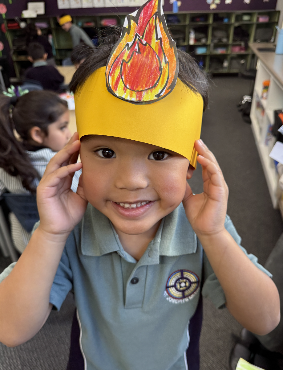 In Religion, the preps are learning about Pentecost and the Holy Spirit. We listened to the story of the disciples receiving the Holy Spirit and created a headband that represented the Holy Spirit. We talked about what the holy spirit is and made a connection about how the holy spirit is with us today.
