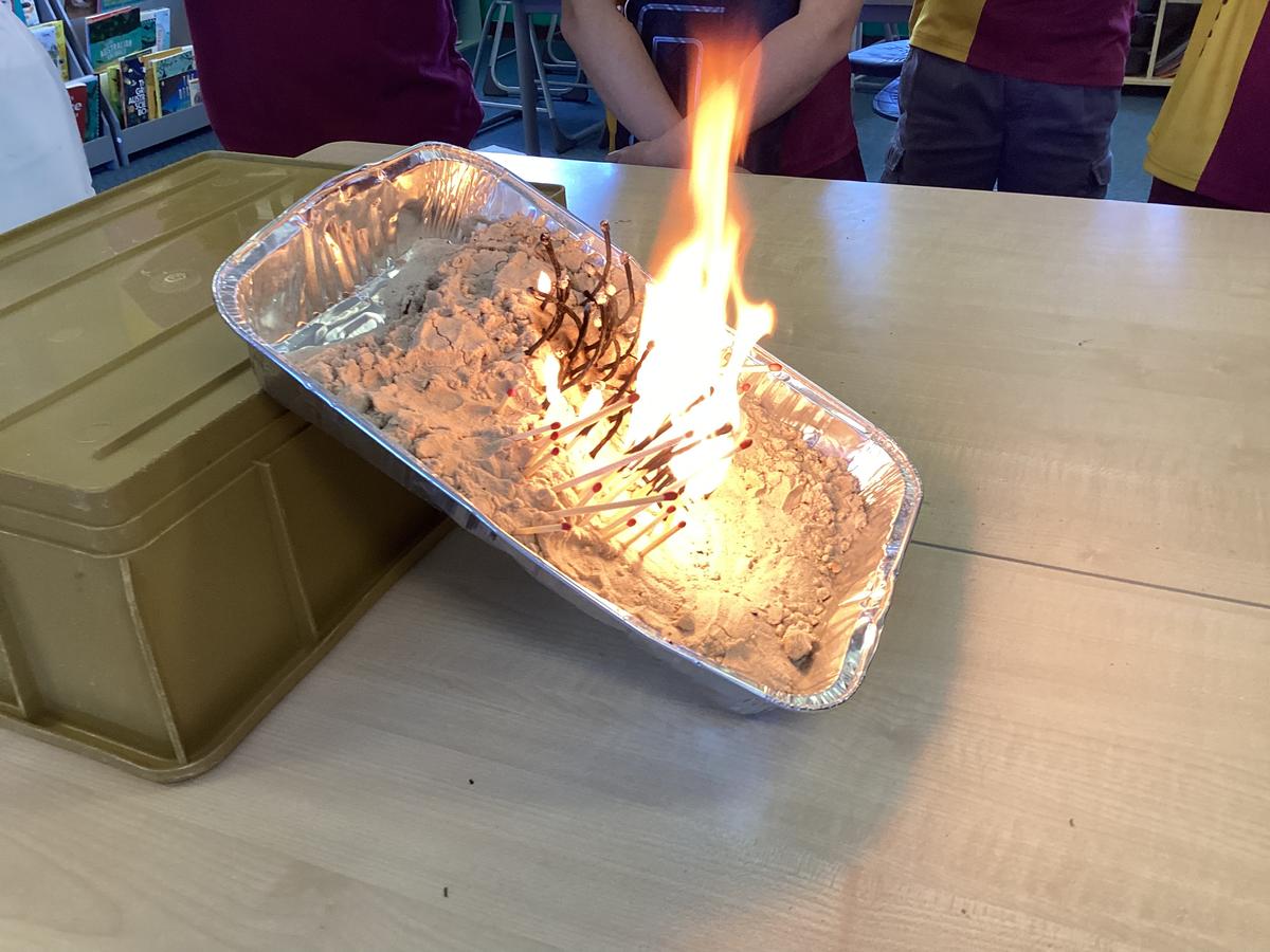 We spent some time designing and conducting experiments where we predicted the effects of floods on different environments, tried to build structures to withstand an earthquake using spaghetti and marshmallows and looked at the movement of fire based on the conditions we had constructed.