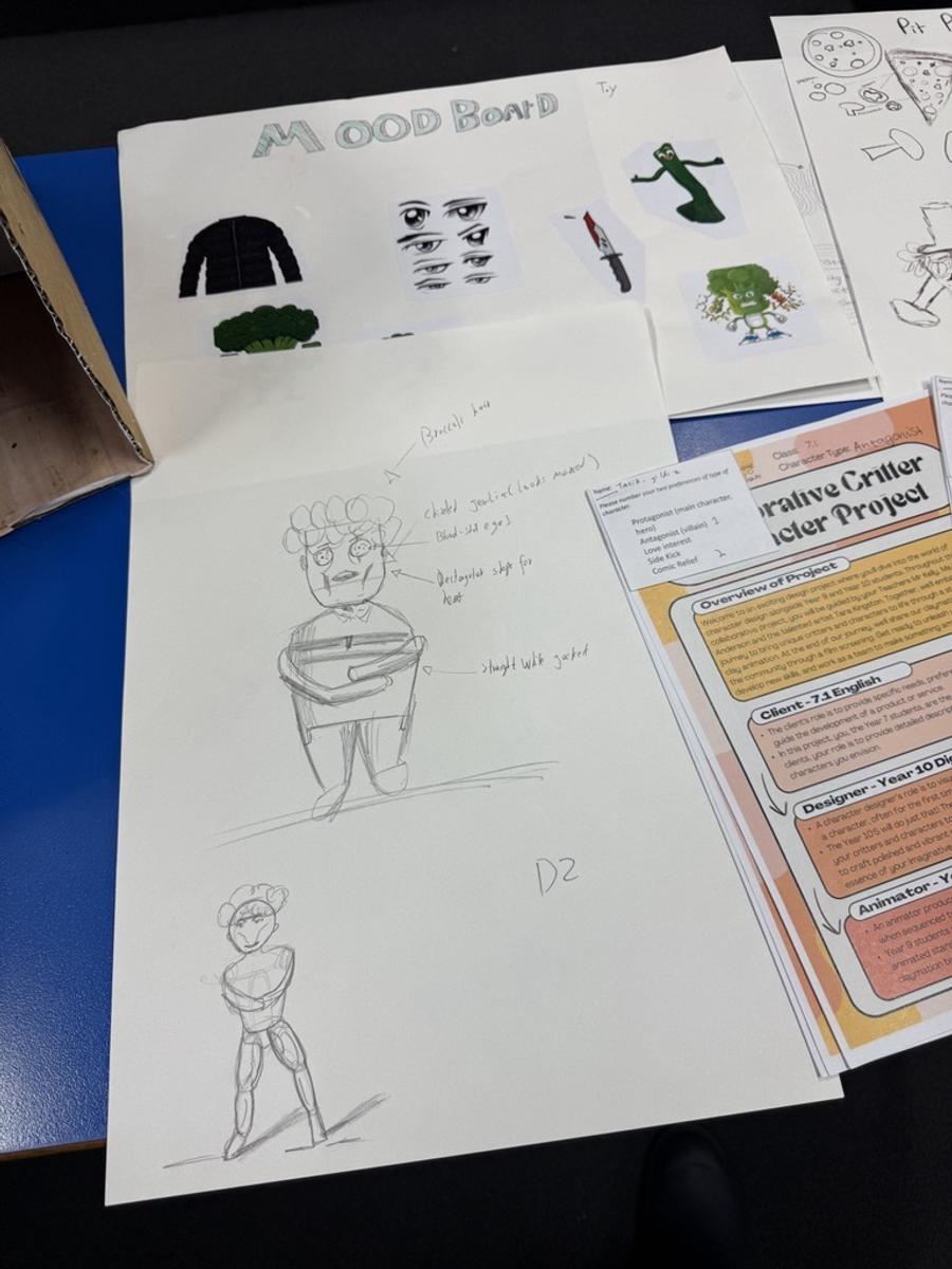 Our Year 7.1 English Class, under the guidance of their English teacher Mr Kelly, provided detailed descriptions and ideas for their critter characters to the Year 10 Digital Art Class.
