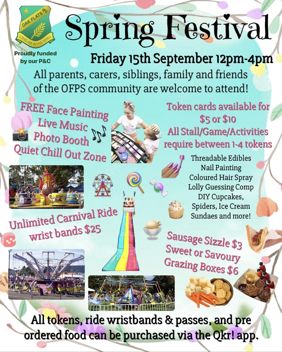 Our Spring Festival is just over a week away!! Thanks to our P&C, we are so excited to be holding our Spring Festival on Friday, 15 September 2023, from 12pm until 4pm.