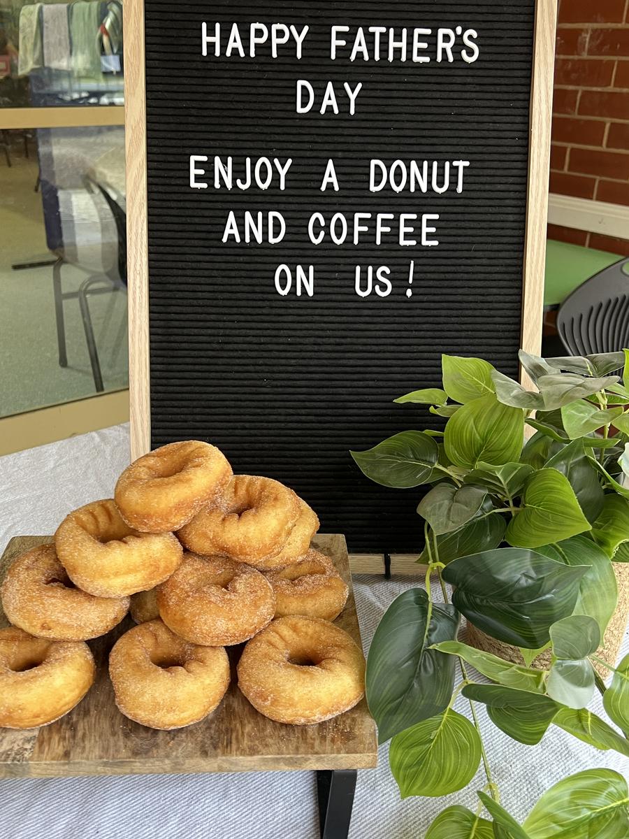 What a wonderful way to start the day last Friday with our Father's Day breakfast of coffee and donuts. The weather was very kind as dads, grandads, father figures and friends came together to spend time with our young children kicking the footy, playing table tennis, jenga, connect 4, totem tennis, pickleball and much more. We hope everyone had a lovely day on Sunday with family.
