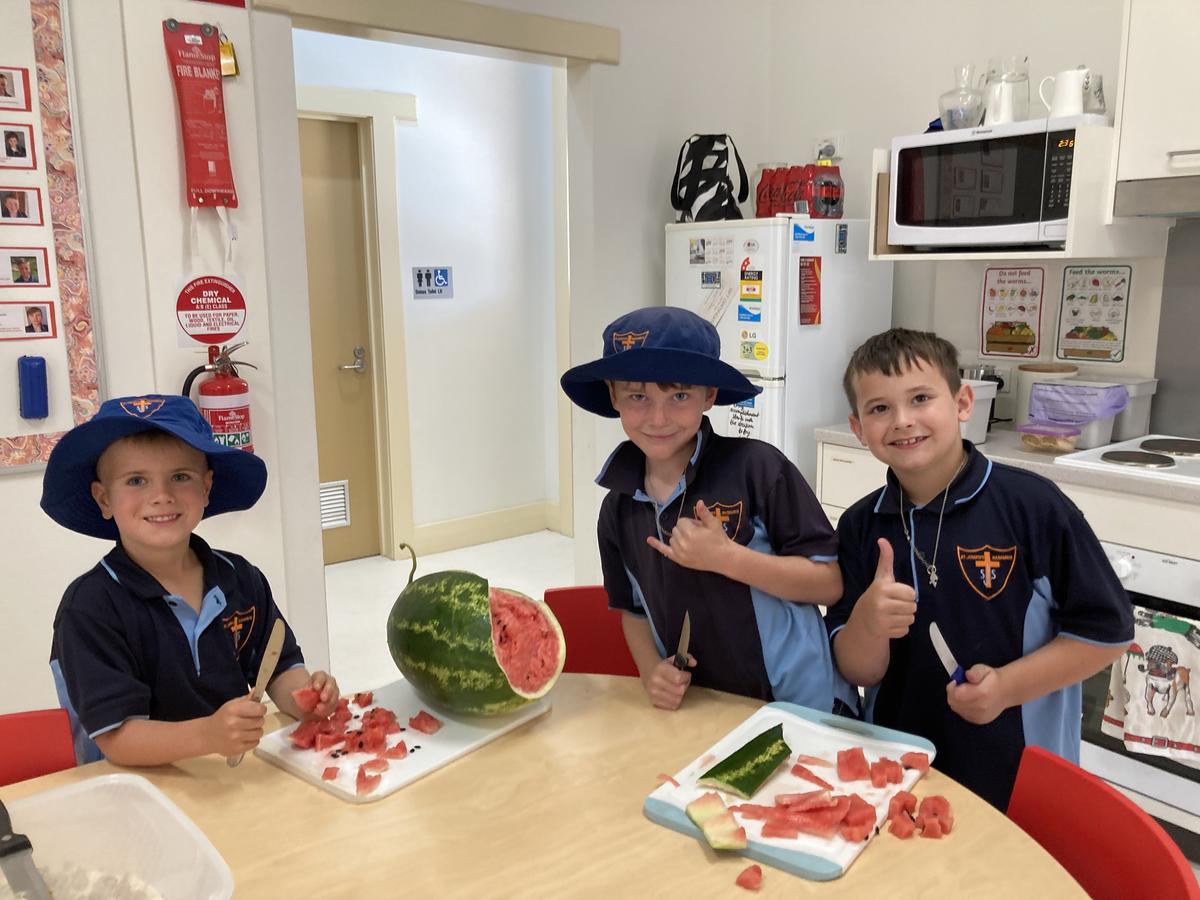 The students enjoyed Strawberry guavas and Feijoa's (pineapple guava) today.
