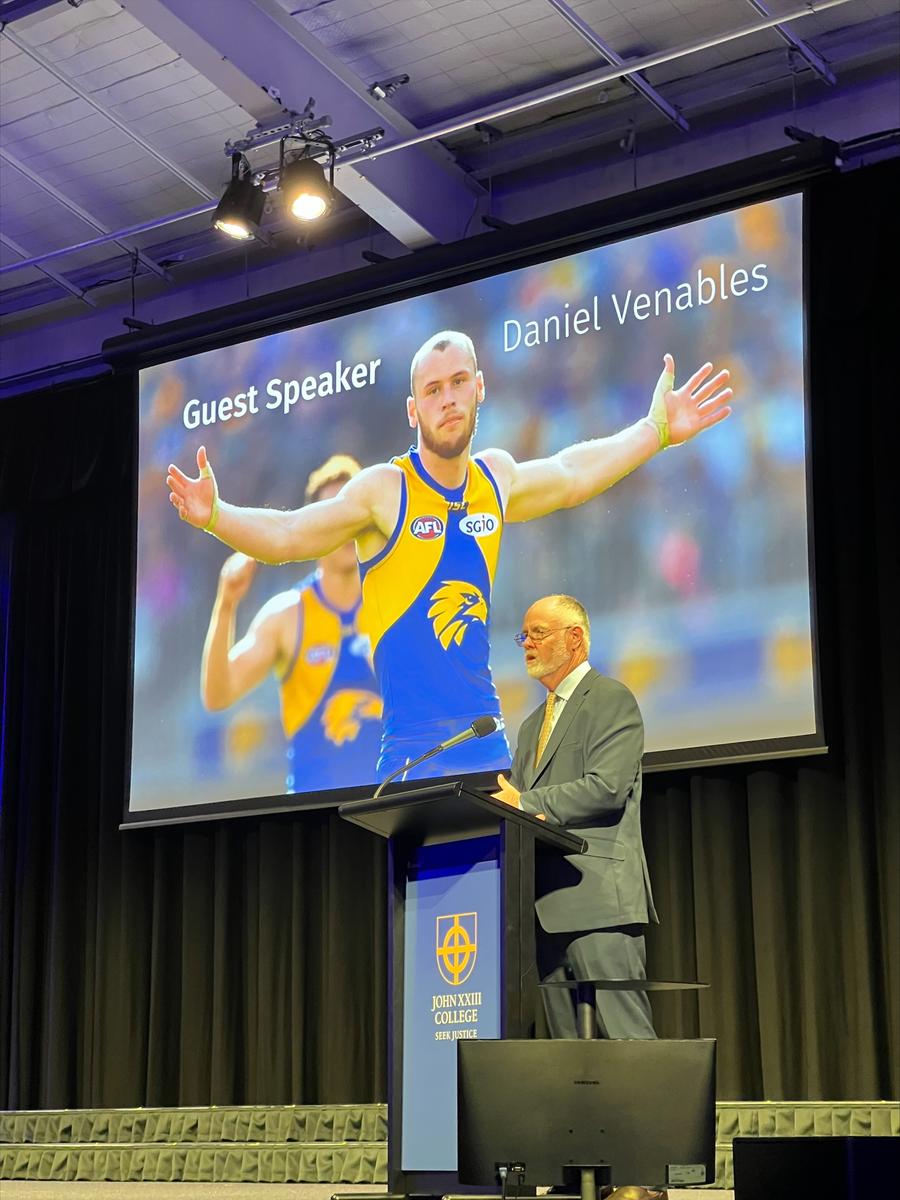 Thank you to our compere for the evening, Mr Glenn Mitchell (former parent of the College), for bringing the night to life with his knowledge and passion for all things sport. We were privileged to hear from Daniel Venables, a retired AFL premiership player who played for the West Coast Eagles. At just 19 years old, he became a premiership player in the club's 2018 Grand Final victory. His promising career was then cut short at age 20 following a traumatic brain injury. Daniel’s story is one of resilience. He continues to advocate for concussion awareness and openly shares his journey of overcoming adversity. Footage of Daniel’s speech will be available in next week’s newsletter.