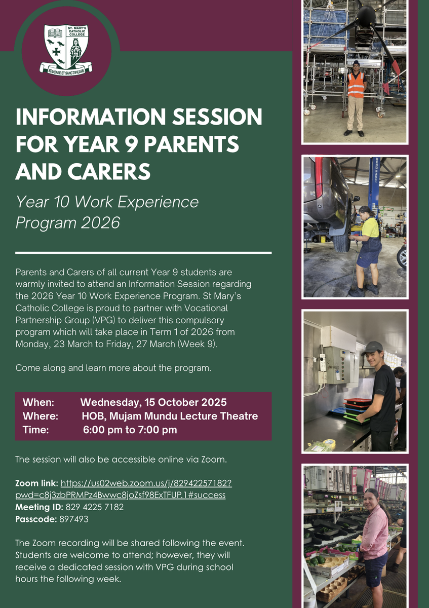 We are preparing students for Work Experience in Term 1 of Year 10. Our partner organisation, VPG, will speak with the Year 9 cohort on Tuesday, 14 October, to help students prepare for their work experience and placement opportunities. We encourage families to start discussing areas of interest and possible career pathways at home.